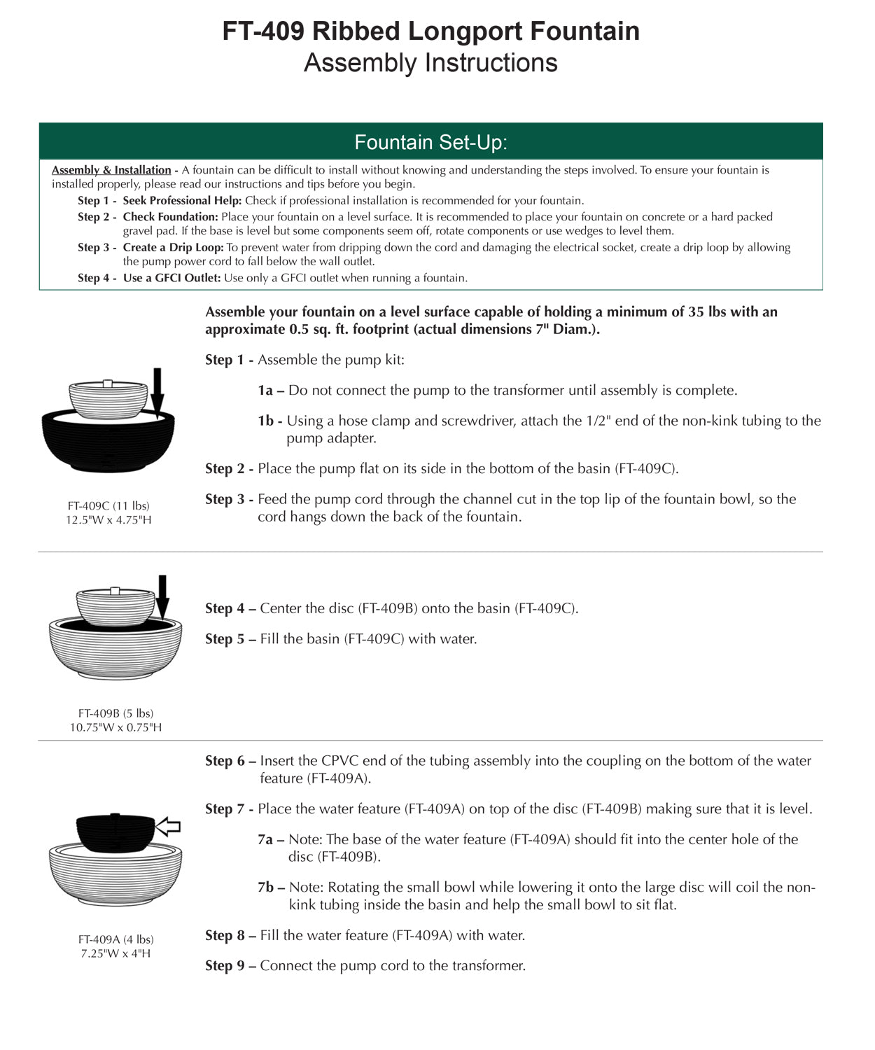 *Due to size and shape, some accessories may not be compatible with each fountain. For questions regarding fountain accessories, please contact customer service.