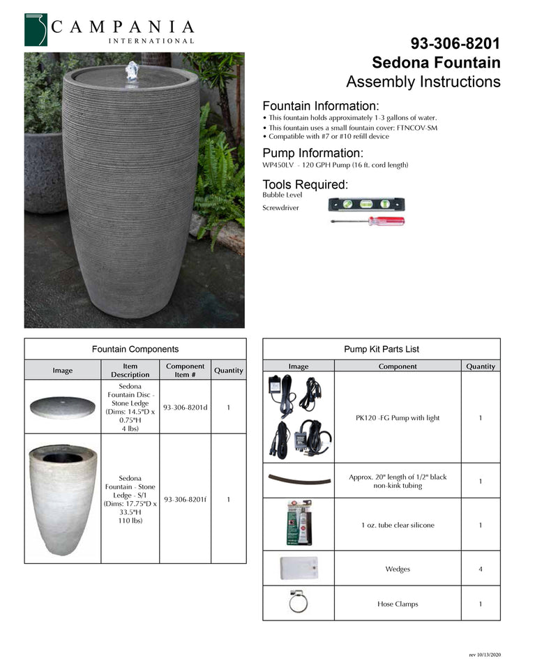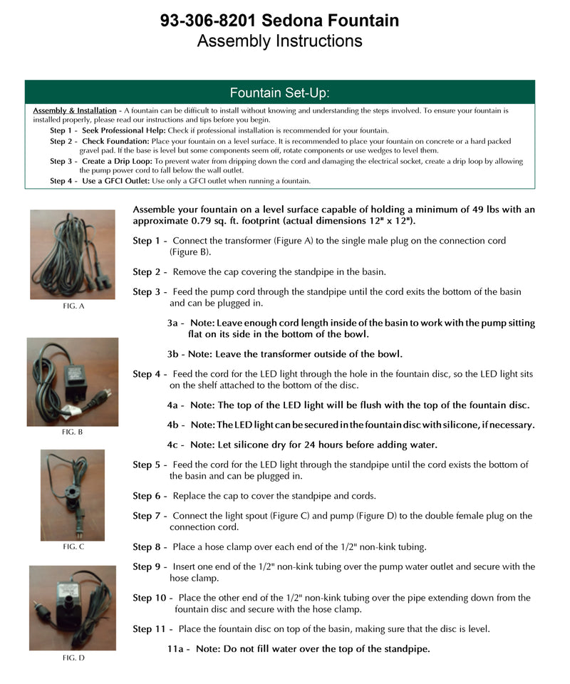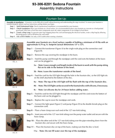 - All hardware and tubing required to properly assemble the fountain