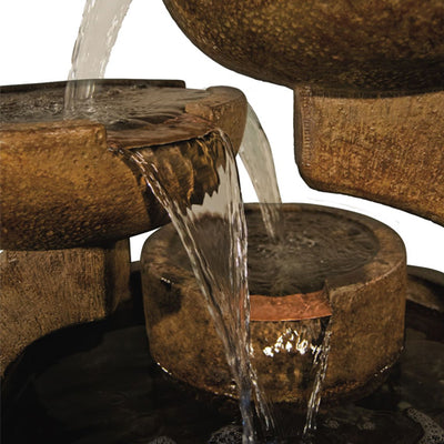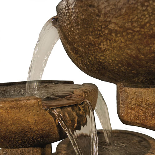 This outdoor fountain is available in 25 Different Finishes. Every finish is hand applied during the production process so color variation is expected. When the finish is applied to the water feature it is designed to replicate the look of naturally aged materials.