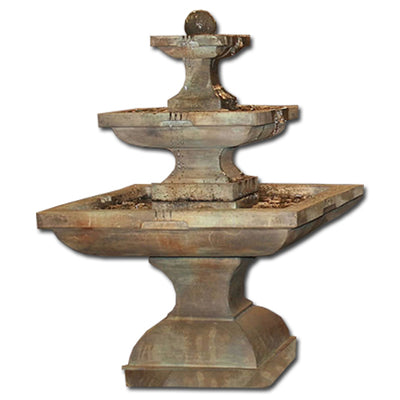 This outdoor fountain is available in 25 Different Finishes. Every finish is hand applied during the production process so color variation is expected. When the finish is applied to the water feature it is designed to replicate the look of naturally aged materials.