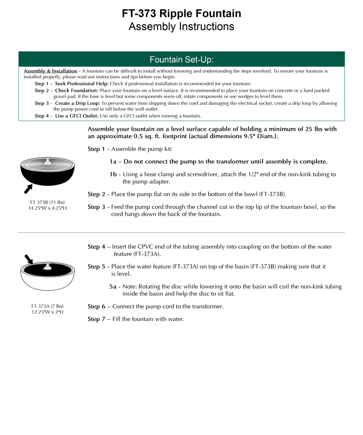 - All hardware and tubing required to properly assemble the fountain