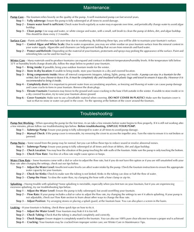 Maintaining your fountain is not difficult. You just need to have the right information to keep your fountain clean and running properly.