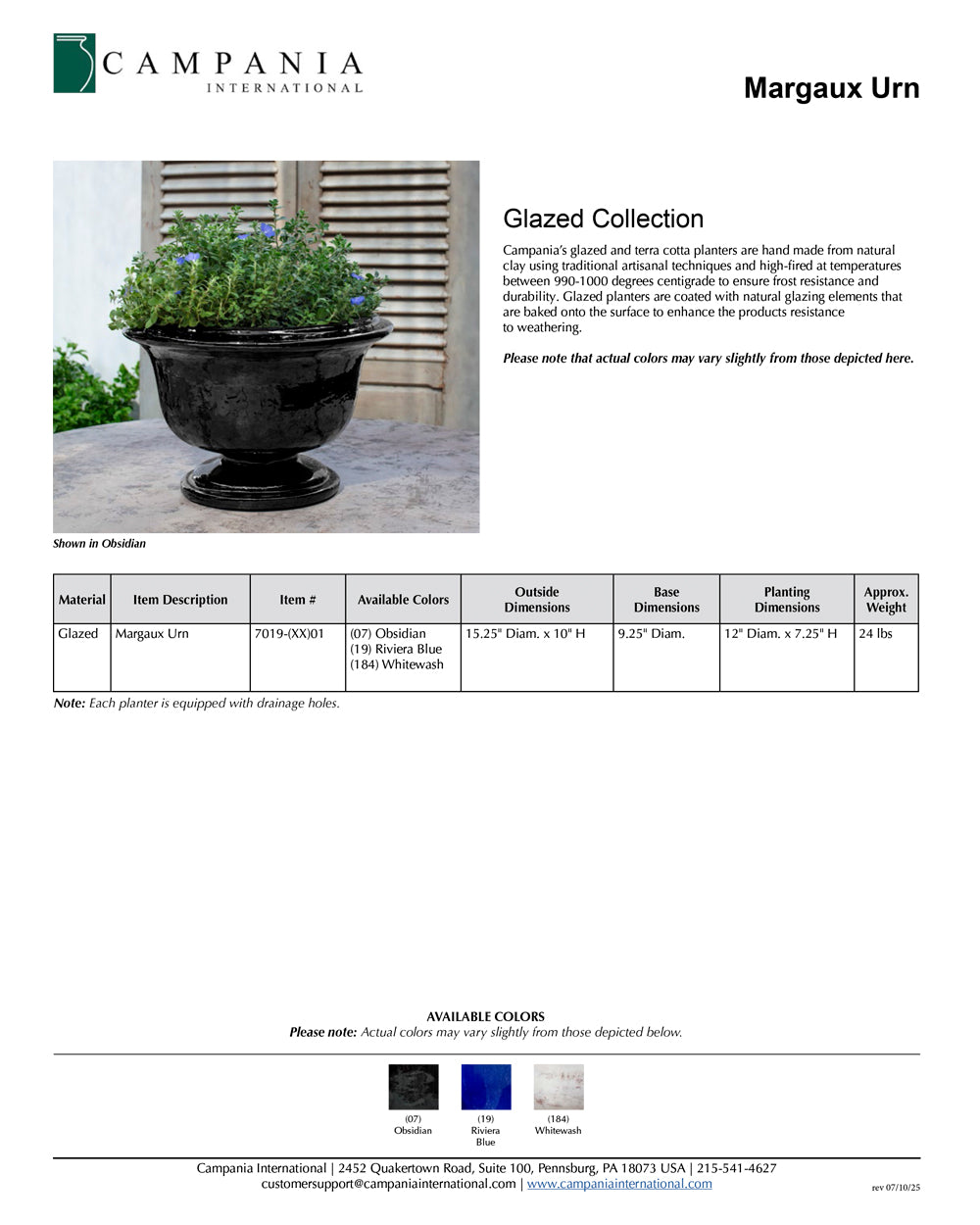 Cleaning Instructions: Campania Glazed and Terra Cotta planters can be cleaned with either mild soapy water or Windex® with Ammonia-D. Spray down the surface of the planter where it is dirty and use a lint-free cloth or sponge to wipe the surface. Note that it may take several cycles of wiping and drying before the planter is completely clean. Do not pressure wash, use alcohol based cleaners, apply corrosive cleaners or clean with anything abrasive.