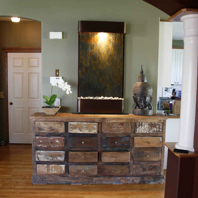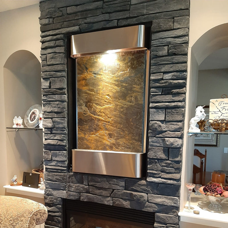 Disclaimer: These custom crafted wall features are made with natural stones. Fissures, fill materials in cavities, flaking of layered stone surfaces, natural grooves or lines, and chips off corners that do not inhibit the performance or aesthetics of the water feature are part of the natural stones and do not constitute a warranty claim.