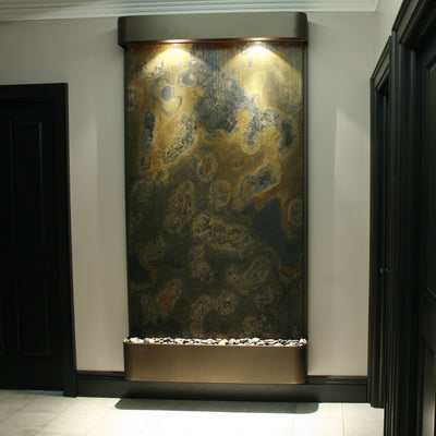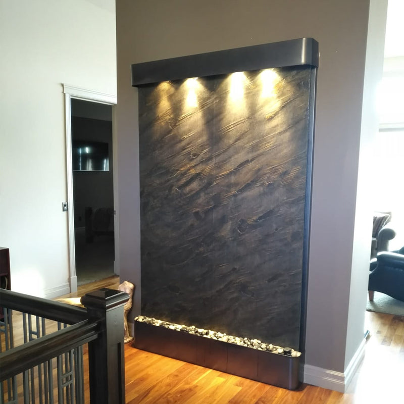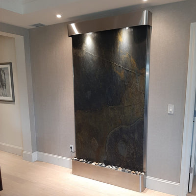 Disclaimer: These custom crafted wall features are made with natural stones. Fissures, fill materials in cavities, flaking of layered stone surfaces, natural grooves or lines, and chips off corners that do not inhibit the performance or aesthetics of the water feature are part of the natural stones and do not constitute a warranty claim.