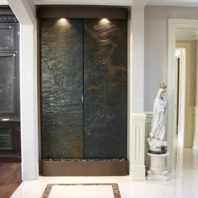 Disclaimer: These custom crafted wall features are made with natural stones. Fissures, fill materials in cavities, flaking of layered stone surfaces, natural grooves or lines, and chips off corners that do not inhibit the performance or aesthetics of the water feature are part of the natural stones and do not constitute a warranty claim.