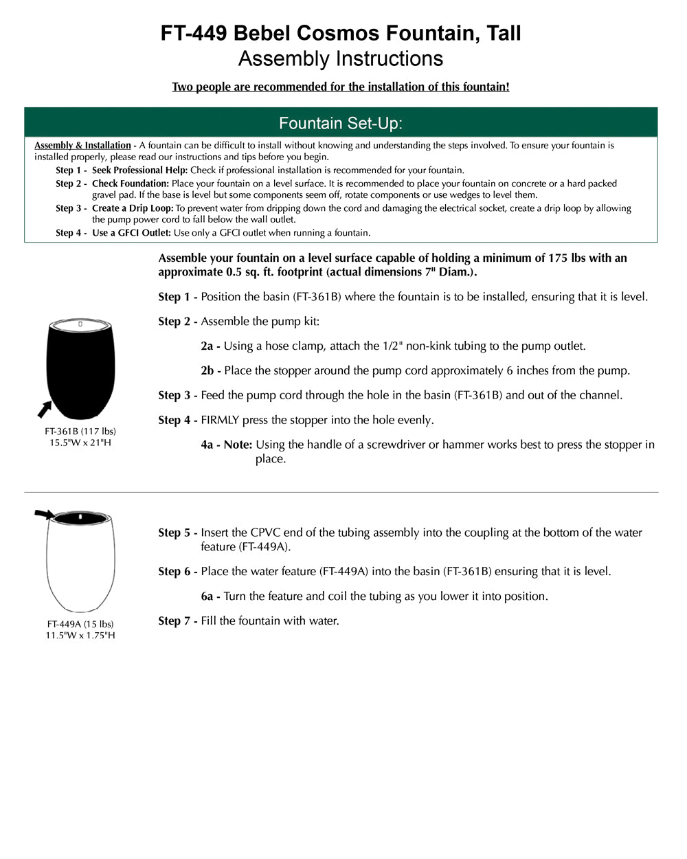 *Due to size and shape, some accessories may not be compatible with each fountain. For questions regarding fountain accessories, please contact customer service.
