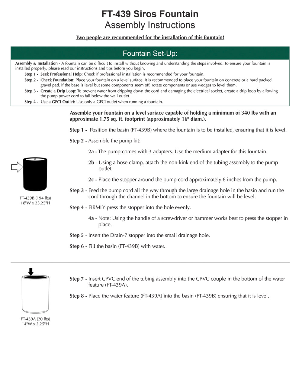 *Due to size and shape, some accessories may not be compatible with each fountain. For questions regarding fountain accessories, please contact customer service.