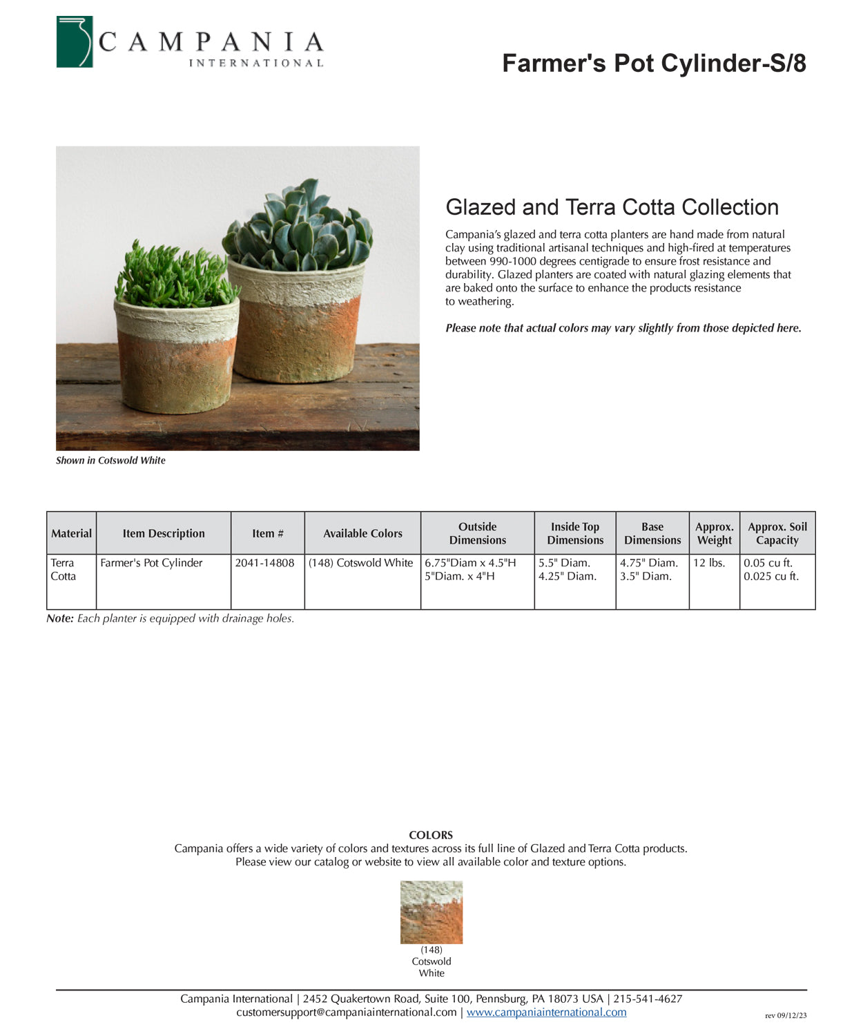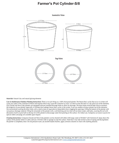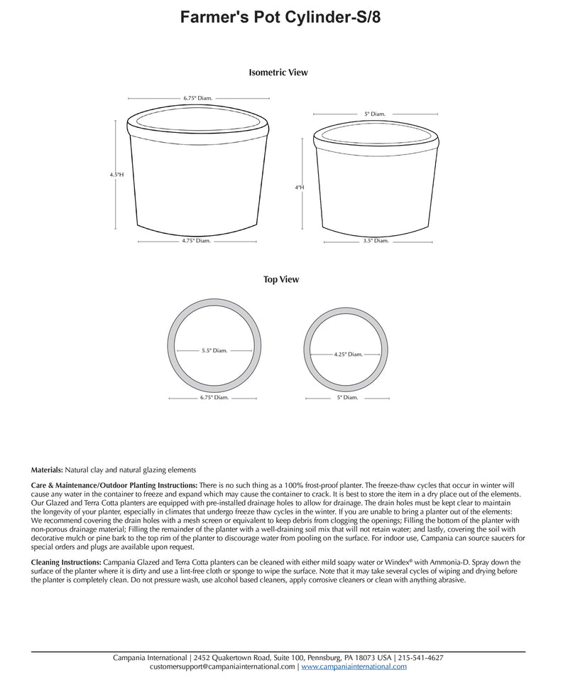 Campania’s glazed and terra cotta planters are hand made from natural clay using traditional artisanal techniques and high-fired at temperatures between 990-1000 degrees centigrade to ensure frost resistance and durability.