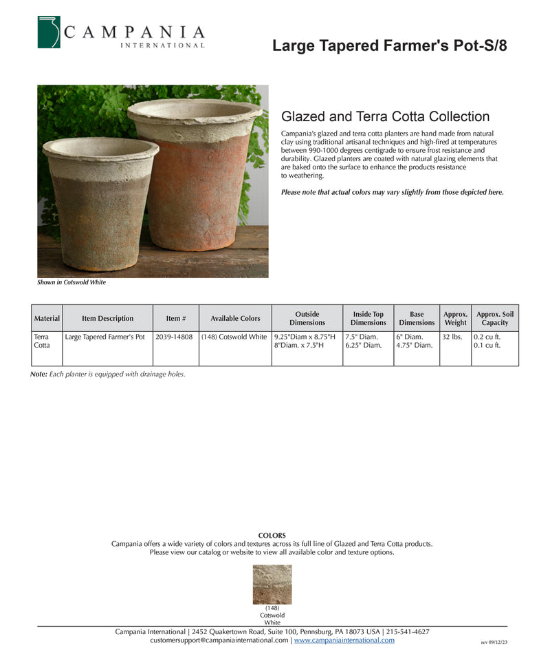 Campania’s glazed and terra cotta planters are hand made from natural clay using traditional artisanal techniques and high-fired at temperatures between 990-1000 degrees centigrade to ensure frost resistance and durability.