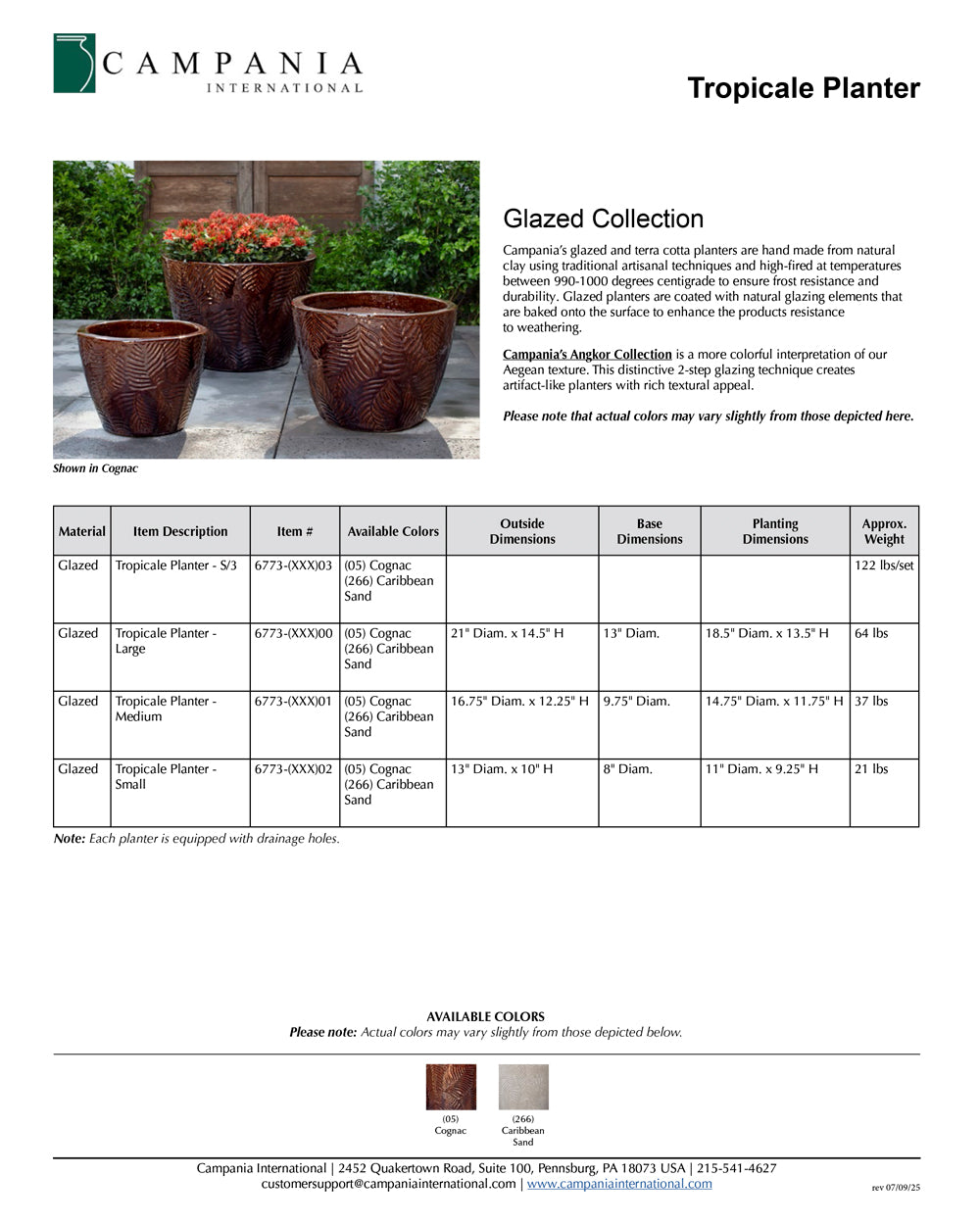 • High fired at 990 (terra cotta) to 1000 (glazed) degrees centigrade to maximize frost resistance and durability