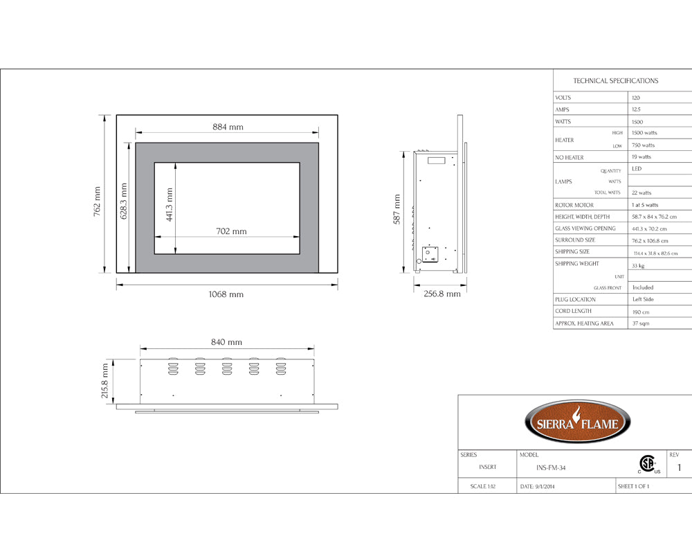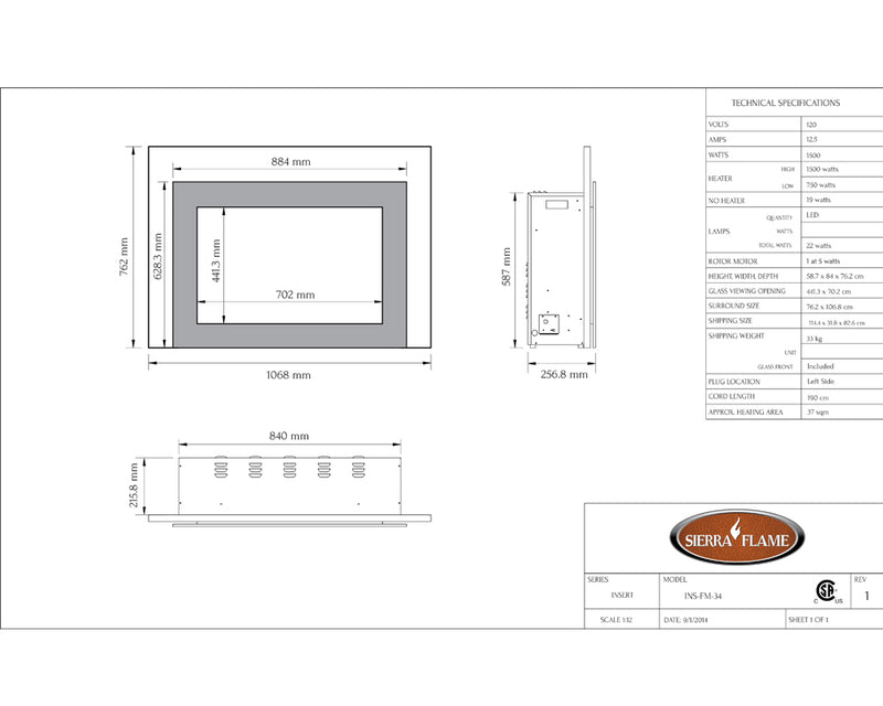 Sierra Flame 34" Smart Insert Electric Fireplace with Black Steel Surround