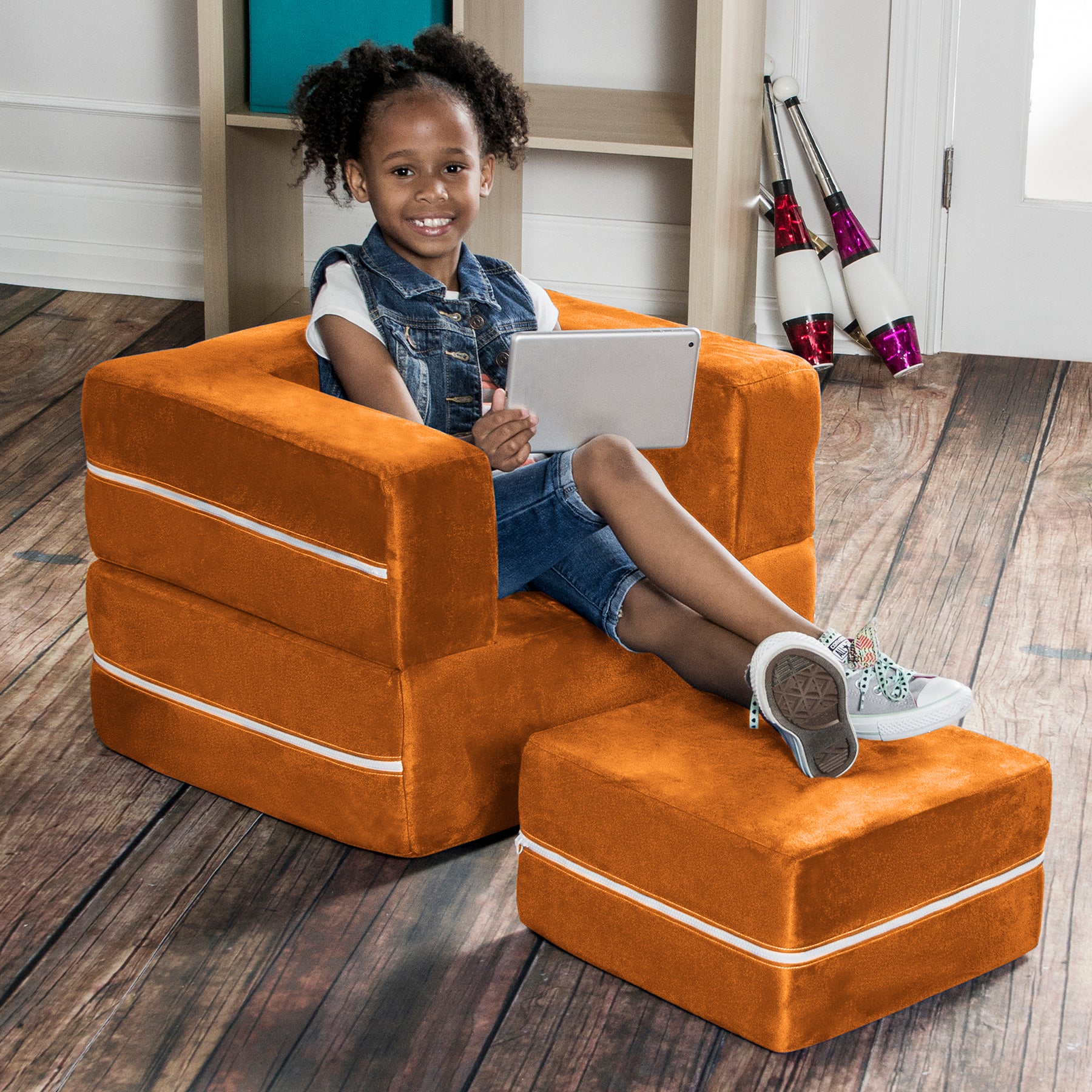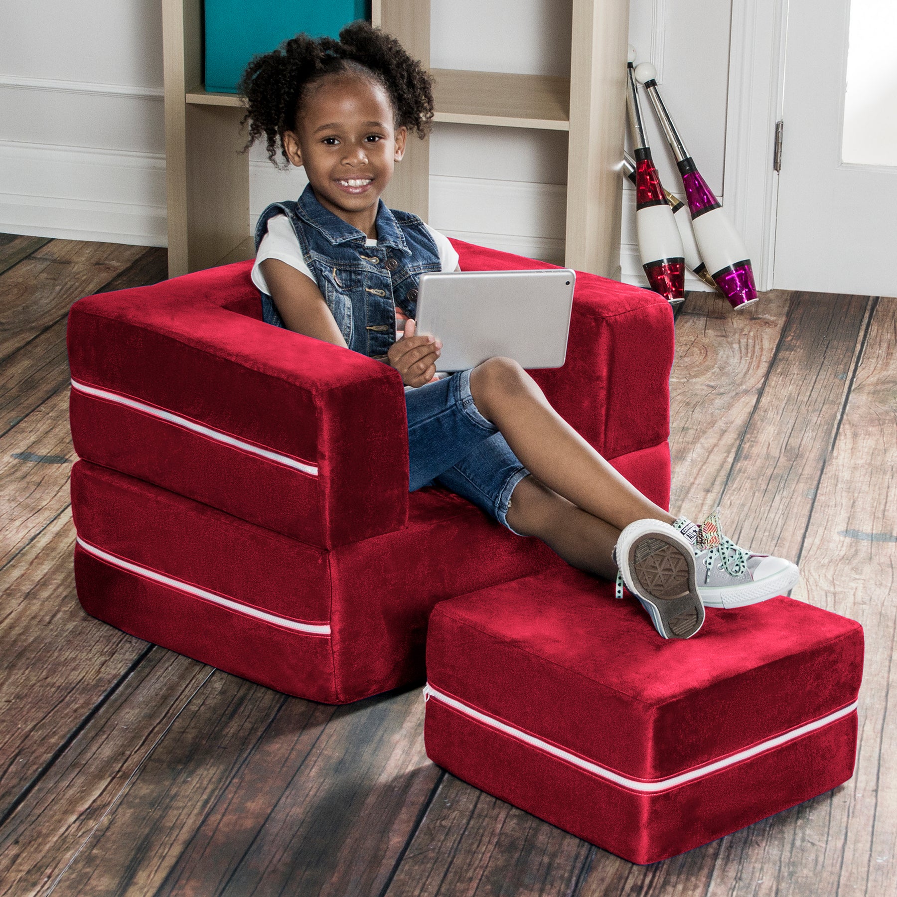 Jaxx Zipline Modular Kids Chair & Ottoman / Fold-Out Lounger