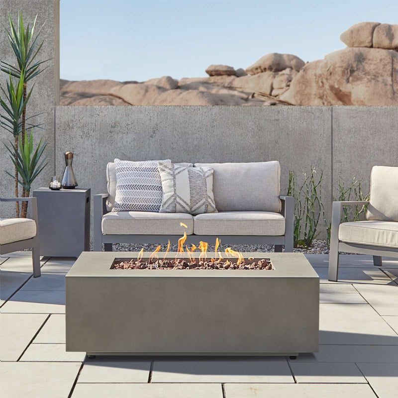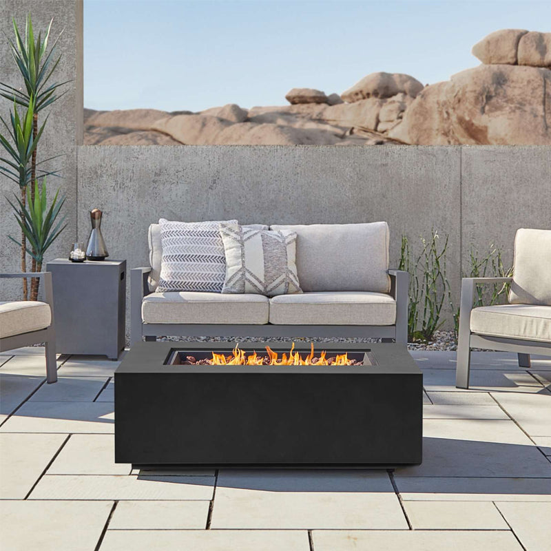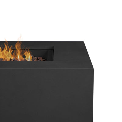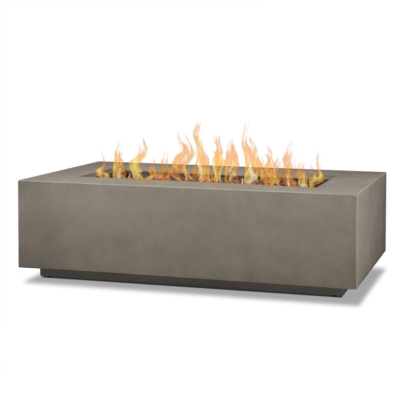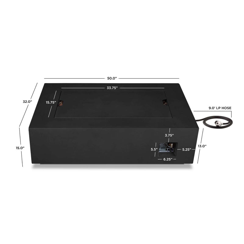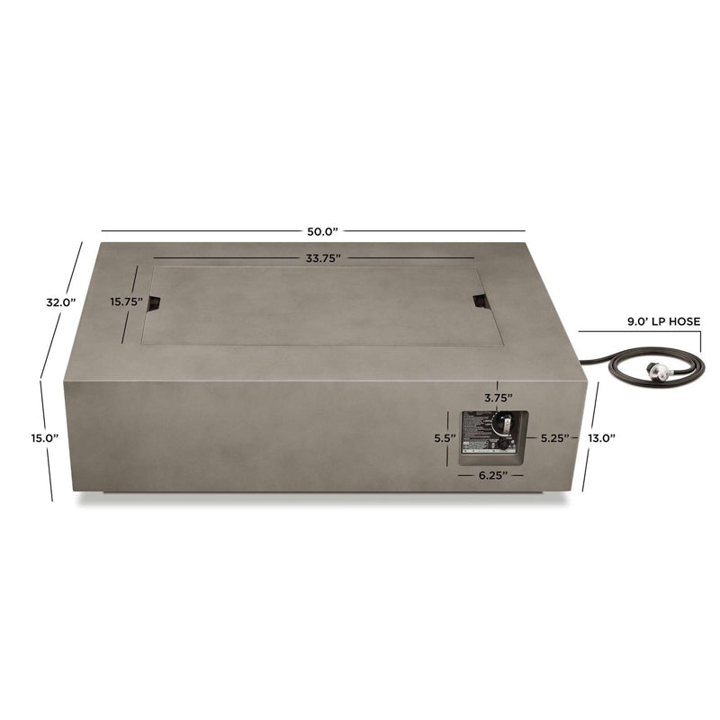 Spark a symphony of modern allure with the Aegean rectangle gas fire table (50"L x 32"W x 15"H): where sleek lines meet mesmerizing firelight. Crafted from durable steel with a subtle texture, this masterpiece instantly elevates your outdoor space. Command the 50,000 BTU flames dancing across the expansive 33.75"L x 15.75"W burn area with a simple push, customizing the ambiance with adjustable flame height. But the magic transcends firelight. When the flames subside, simply add the included lid and the Aegean transforms into a functional outdoor coffee table. Crave fuel flexibility? This beauty comes equipped with both a propane hose and a natural gas conversion kit. Yearning for a complete outdoor oasis? Elevate your style with the matching Aegean outdoor chair, loveseat, sofa, and propane tank cover that doubles as a side table (all sold separately). Crafted with meticulous detail and CSA certified for peace of mind, the Aegean is weather, sun, and rust resistant – built to last countless evenings of laughter and warmth under the stars. Let this modern gem redefine your outdoor haven and ignite endless possibilities for effortless entertaining and timeless elegance.