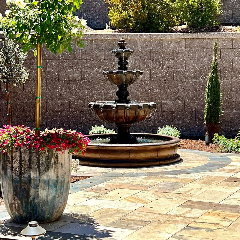 This outdoor fountain is available in 17 Different Finishes. Every finish is hand applied during the production process so color variation is expected. When the finish is applied to the water feature it is designed to replicate the look of naturally aged materials.