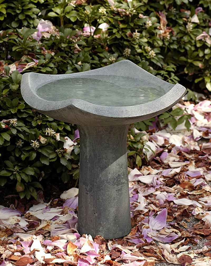 Cleaning Instructions: Campania’s cast stone birdbaths can be cleaned with diluted vinegar and water or with any commercially available mild detergent. Use a soft cloth, sponge, or brush. Do not pressure wash, apply corrosive cleaners or clean with anything abrasive. Note that it may take several cycles of wiping and drying before the birdbath is completely clean. Cast stone contains salts that may effloresce over time. You will notice a fine white powdery coating on the surface of the cast stone if the efflorescence is present in your product. If you wish to remove the salt deposits, Campania can recommend an appropriate an efflorescence cleaner.