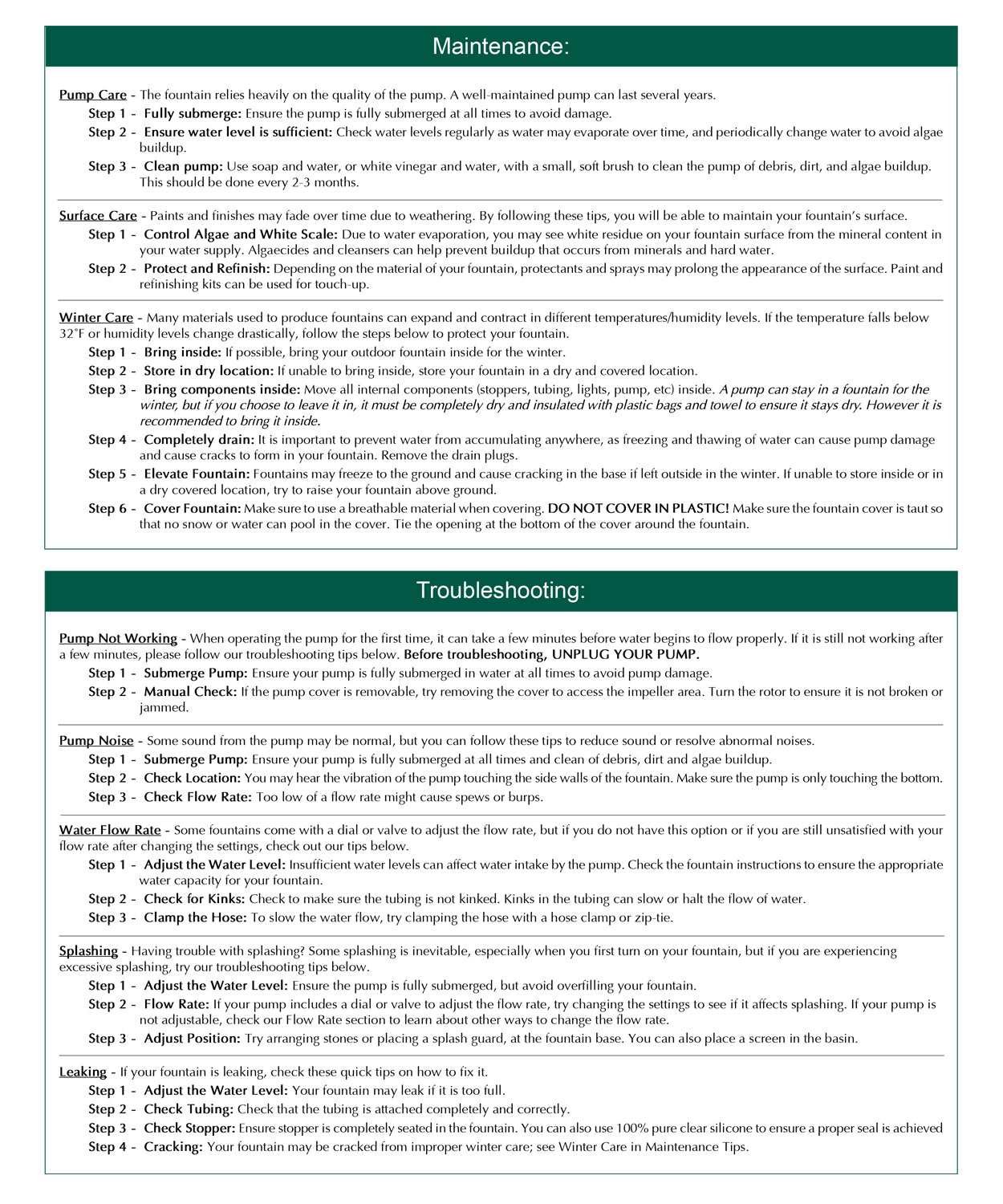 Maintaining your fountain is not difficult. You just need to have the right information to keep your fountain clean and running properly.