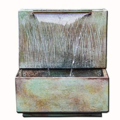 This outdoor fountain is available in 25 Different Finishes. Every finish is hand applied during the production process so color variation is expected. When the finish is applied to the water feature it is designed to replicate the look of naturally aged materials.