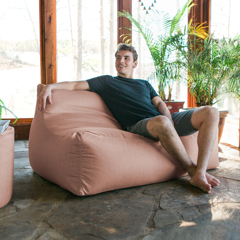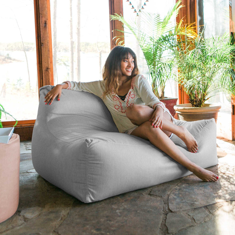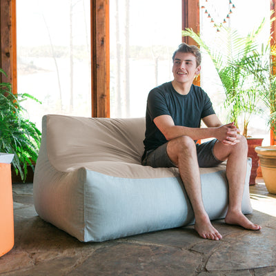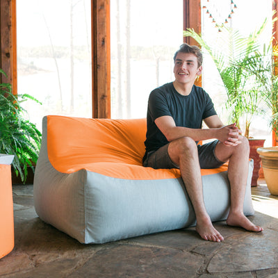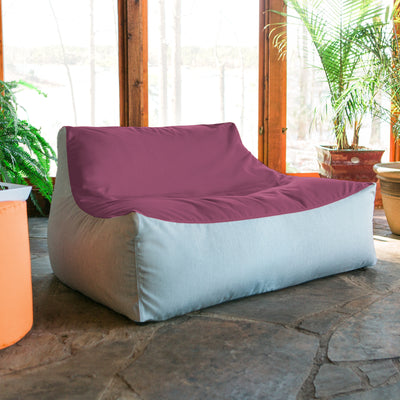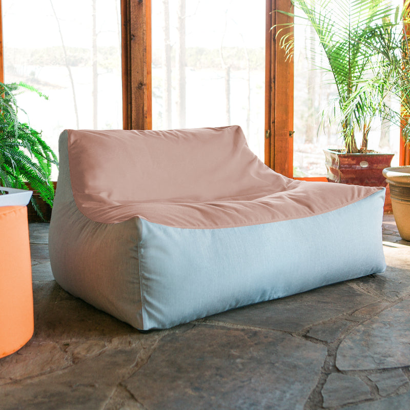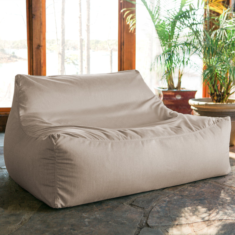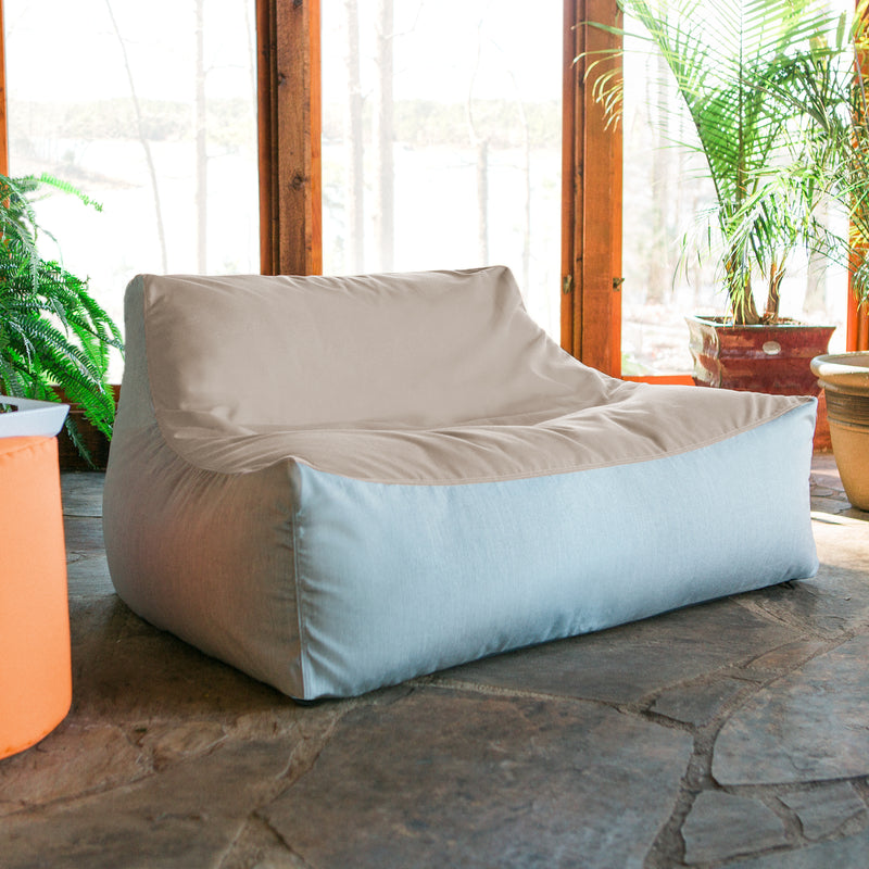 • Outdoor bean bag loveseat for stylish lounging by the pool, patio, or boat. Unique modular and lightweight alternative to uncomfortable and dated patio furniture.