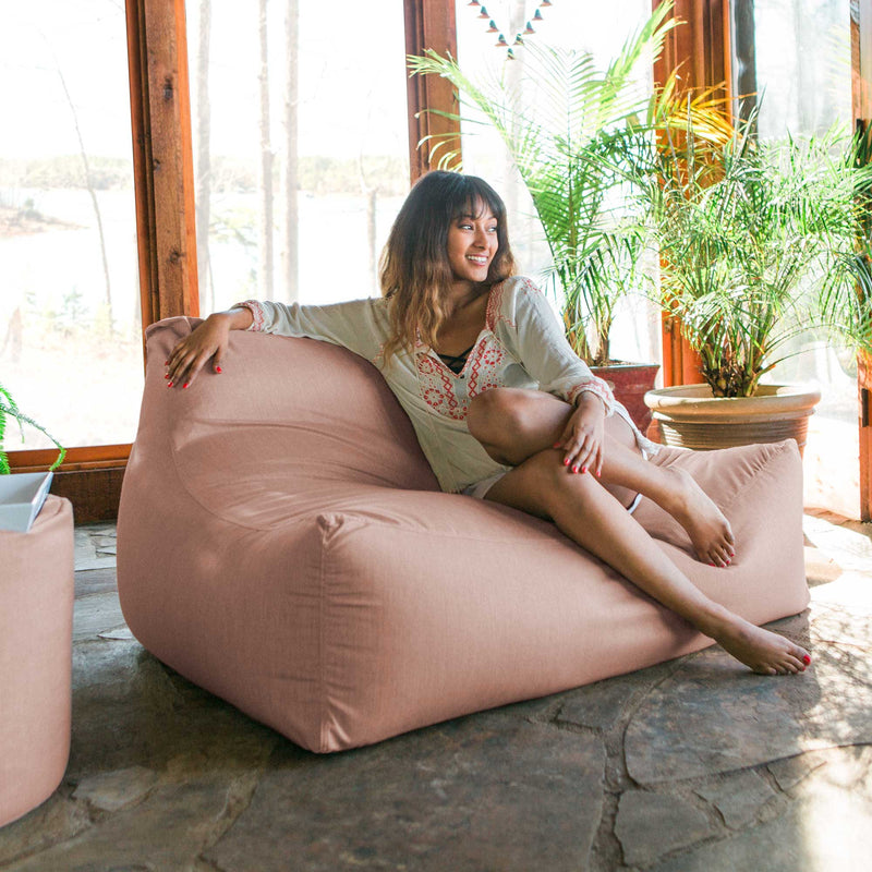 With deluxe sizing, a small-footprint design, and all-weather durability, the LaVista Outdoor Loveseat is both a perfect leisure chair for one or an exquisite snuggle sofa for two. Made in the USA, this lightweight outdoor loveseat features a fine bead filling that conforms to your body for the ultimate “easy-living” style and practically begs you to make yourself comfortable for hours and hours, indoors and out. Crafted from premium Sunbrella coated acrylic, our outdoor loveseat is available in solid or two-tone color fabric which is treated to resist dirt, mold, mildew and harsh UV light, making it the ideal spot by the pool. Mix and match with other Jaxx outdoor items. Buy a companion pattern or switch it up for a pop of color.