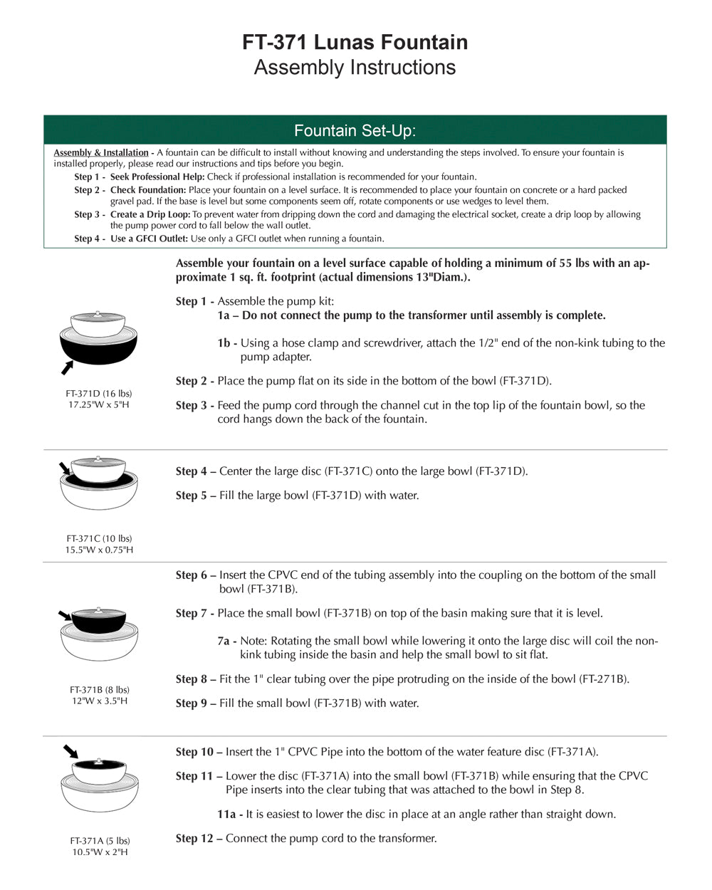 *Due to size and shape, some accessories may not be compatible with each fountain. For questions regarding fountain accessories, please contact customer service.