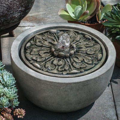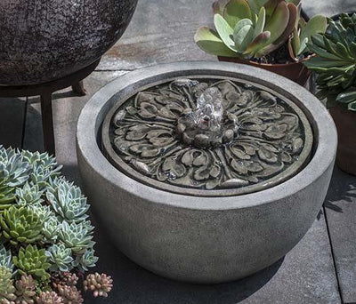The M-Series Medallion Fountain will make a stunning addition to any garden or patio. It features a smooth round bowl and an ornate disc within it. A relatively small yet very beautiful piece that will easily complement and blend with any setting.
