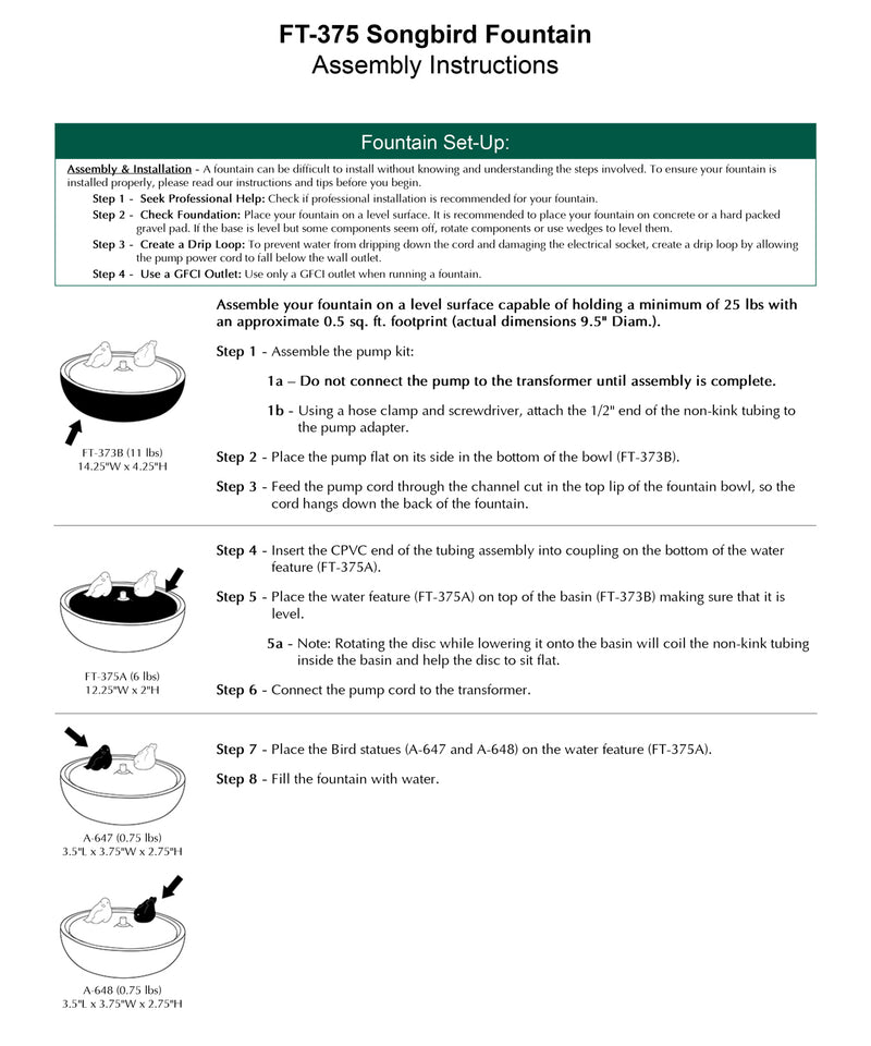 *Due to size and shape, some accessories may not be compatible with each fountain. For questions regarding fountain accessories, please contact customer service.