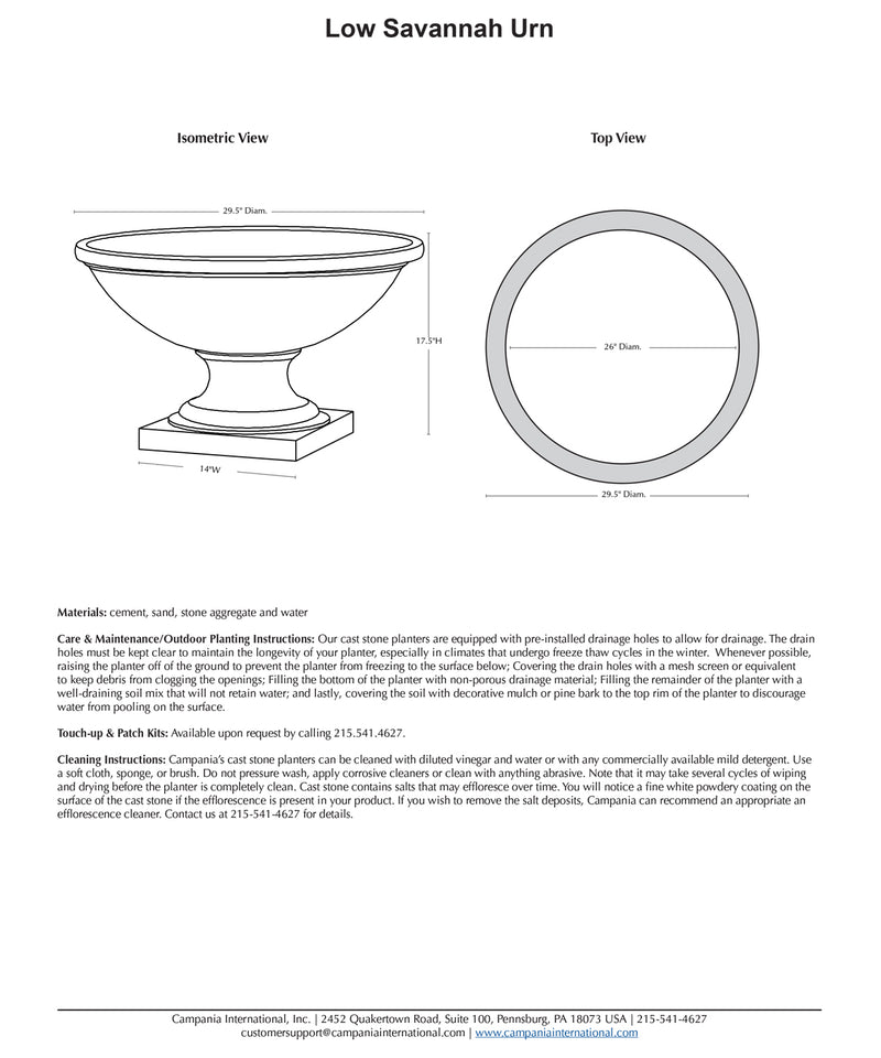 This Low Savannah Urn Garden Planter is perfect for your garden with those colorful flowers planted on it. Its style is almost perfect for your garden, patio or as an accent to any concrete stand that you have.