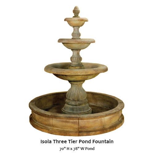 This outdoor fountain is available in 17 Different Finishes. Every finish is hand applied during the production process so color variation is expected. When the finish is applied to the water feature it is designed to replicate the look of naturally aged materials.