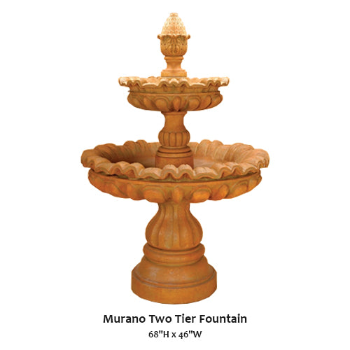 This outdoor fountain is available in 17 Different Finishes. Every finish is hand applied during the production process so color variation is expected. When the finish is applied to the water feature it is designed to replicate the look of naturally aged materials.