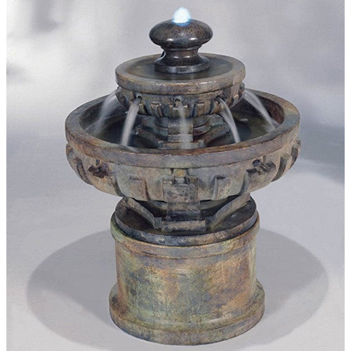 This outdoor fountain is available in 25 Different Finishes. Every finish is hand applied during the production process so color variation is expected. When the finish is applied to the water feature it is designed to replicate the look of naturally aged materials.