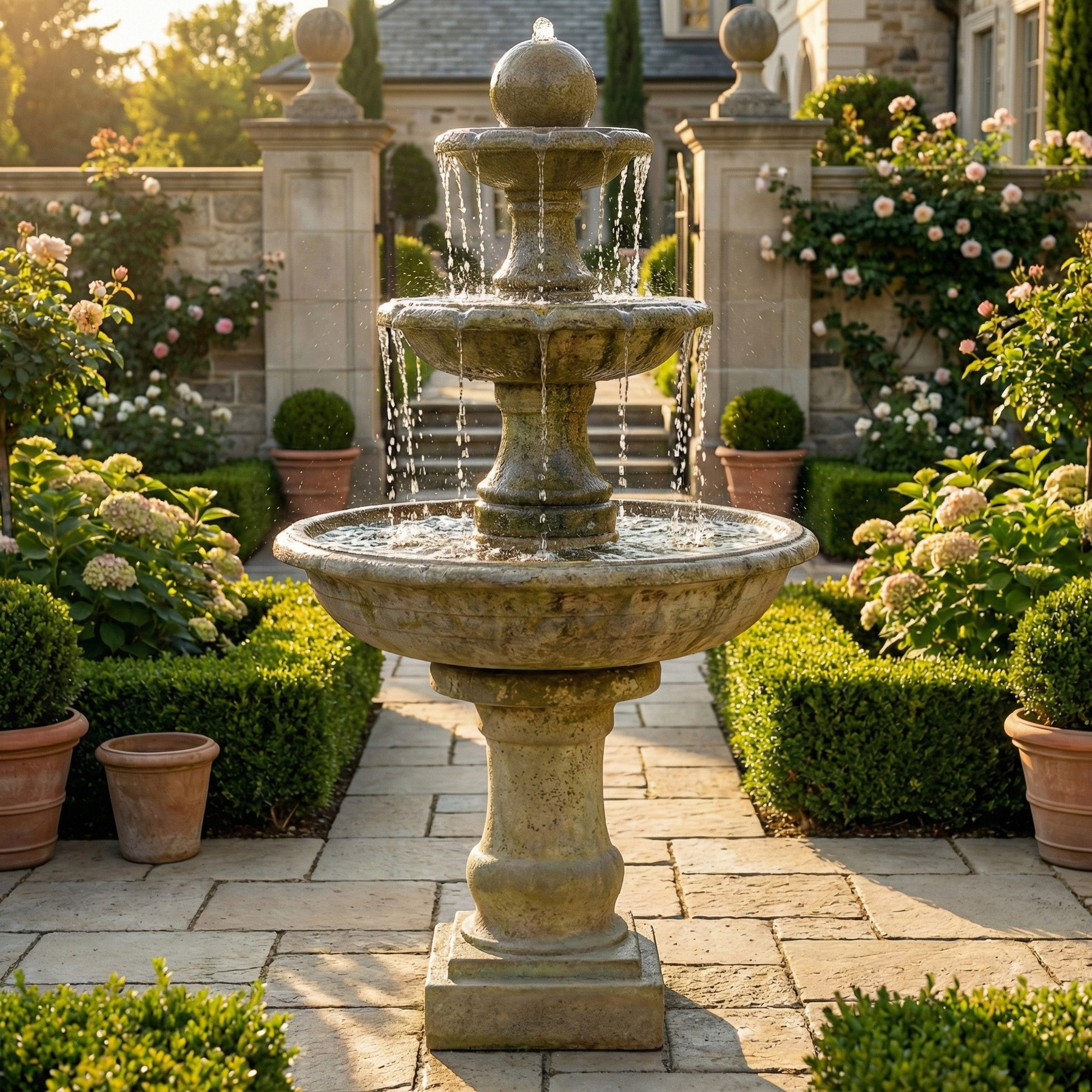 A stunning focal point, the Tosca Three Tier Fountain offers a soothing sight and sound of cascading water.