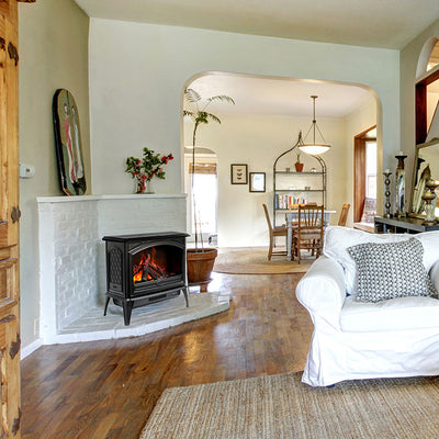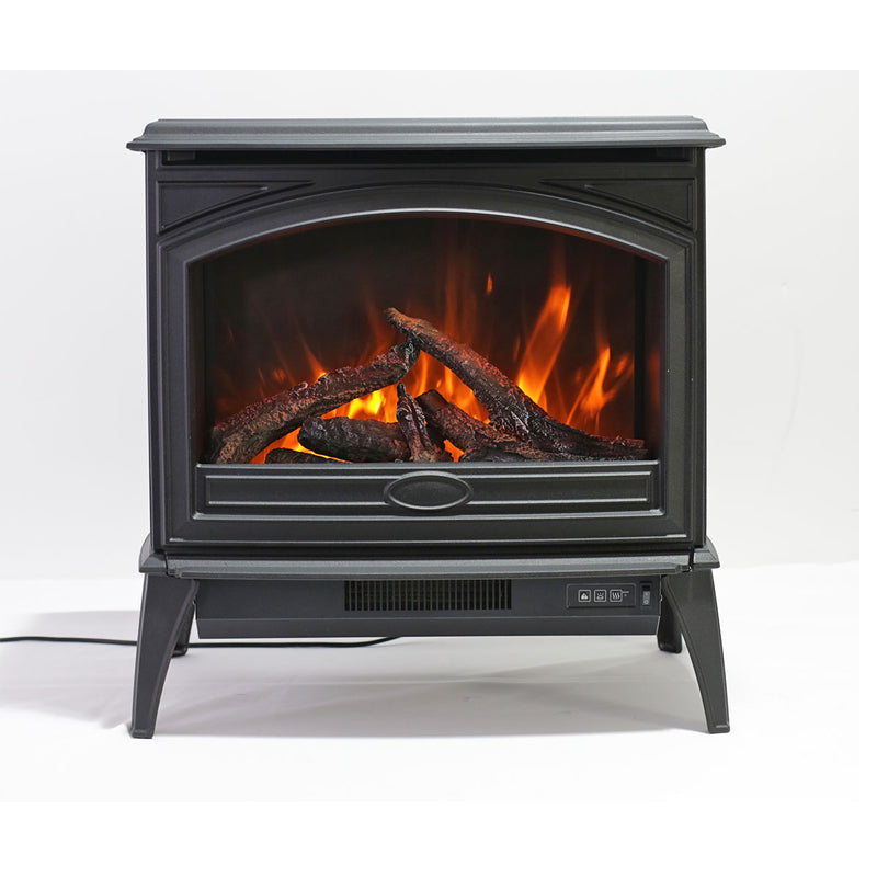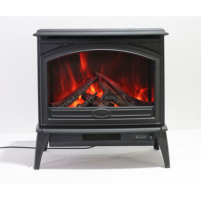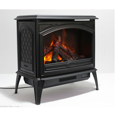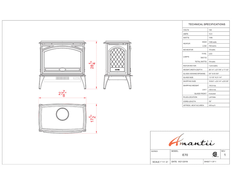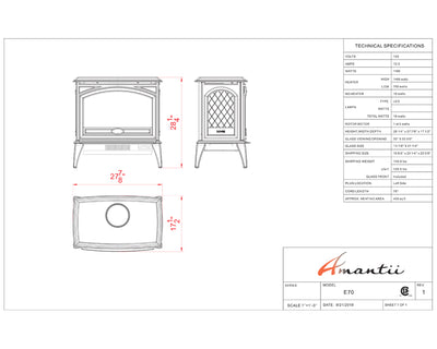 Ignite a symphony of fire and ice in any room with the Amantii 70" Lynwood Series - Freestand Cast Iron Electric Stove Fireplace. This European stunner (28"H x 27.75"W x 17.5"D) boasts a majestic viewing area (13"H x 21"W) framed in elegant beveled glass. Watch the flames dance in a mesmerizing ballet of color: click the remote and transform them from traditional orange to contemporary rose, purple, violet, or even icy blue. Two flame sets and 13 canopy lighting themes create the illusion of a real fire, while the 5000 BTU heater warms up to 500 sq. ft. Enjoy the flames with or without heat, and customize your comfort with two heat settings and a thermostat. No construction required: just plug it in and let the Lynwood E70 work its magic. Crafted from real cast iron, this stove is as beautiful as it is functional. Bonus: a multi-function remote and lower heat vent complete the package. Embrace the Lynwood E70 and let the fire ignite endless possibilities for warmth, ambiance, and European charm.