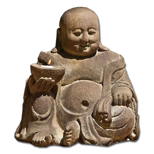 Create a relaxing outdoors with Campania's Abaca Buddha. This garden accent is made of durable cast stone and comes in several rich colors that can blend into any natural setting, or display indoors for a wonderful home accent piece.