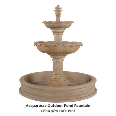 This outdoor fountain is available in 17 Different Finishes. Every finish is hand applied during the production process so color variation is expected. When the finish is applied to the water feature it is designed to replicate the look of naturally aged materials.