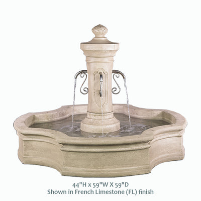 This outdoor fountain is available in 17 Different Finishes. Every finish is hand applied during the production process so color variation is expected. When the finish is applied to the water feature it is designed to replicate the look of naturally aged materials.