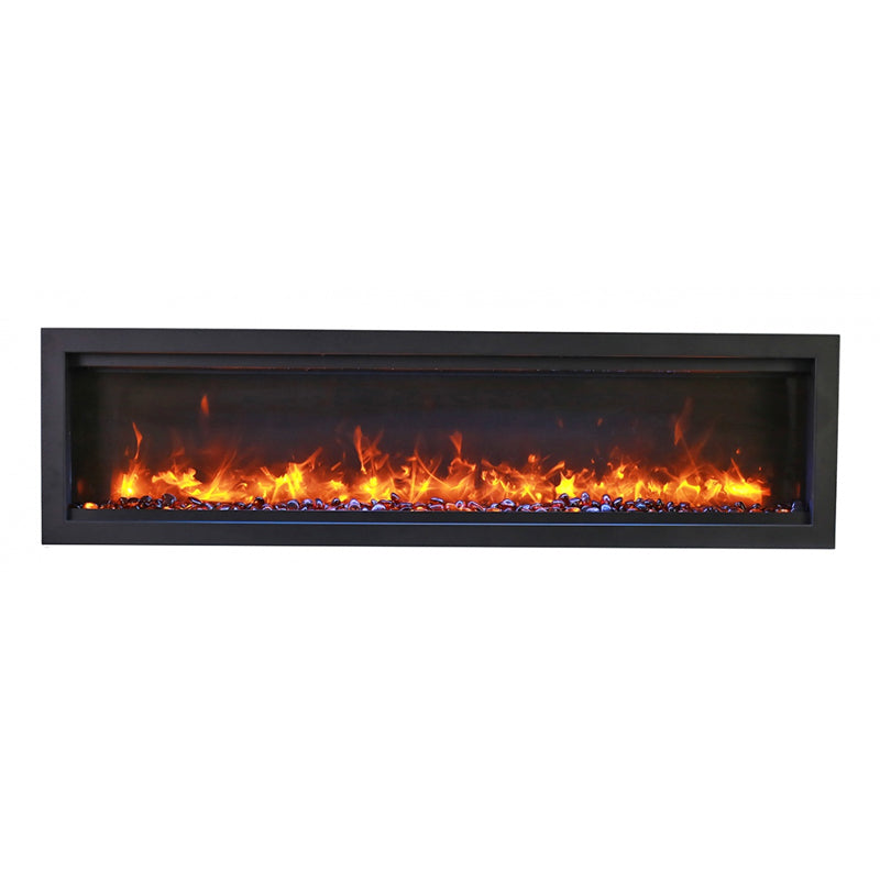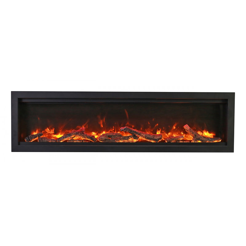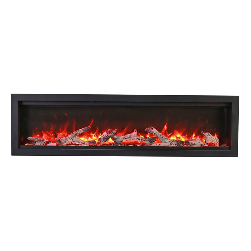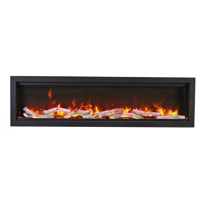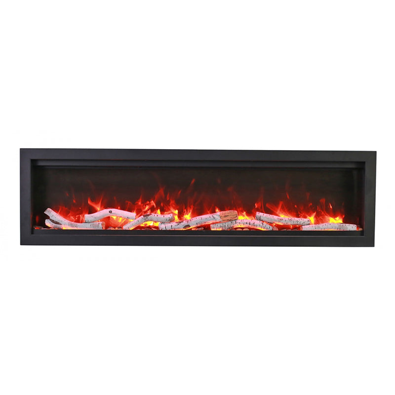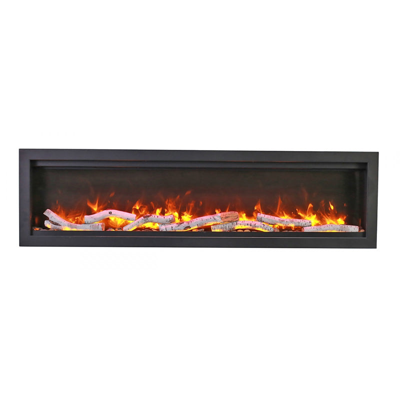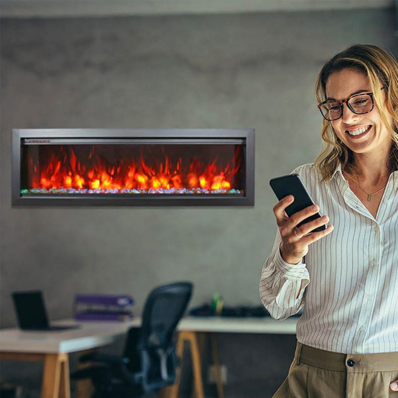 Embrace the symphony of fire and sound with the Amantii 60" BESPOKE Symmetry Smart Indoor | Outdoor Electric Fireplace (15-5/8"H x 60-1/4"W x 5-1/2"D). This panoramic marvel boasts a dazzling 13-1/8"H x 58-3/8"W glass view, where lifelike LED flames dance in shades of yellow, orange, and red at your command. Immerse yourself in the crackling melody of a real fire thanks to the integrated speaker and sound system, bringing the warmth of a winter night indoors. Control it all from anywhere: use the WiFi app to schedule firelight moments, adjust flame speed and brightness, or let the weather trigger its automatic warmth (up to 5000 BTU!). Choose your installation: fully recess for a seamless look, wall-mount for space-saving elegance (consult your builder!), or utilize the included black surround for a classic touch. Personalize your haven: adjust the flame pattern, set timers, and explore the endless possibilities. This BESPOKE masterpiece isn't just a fireplace, it's a captivating sensory experience that ignites your senses, indoors or out