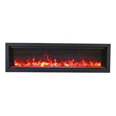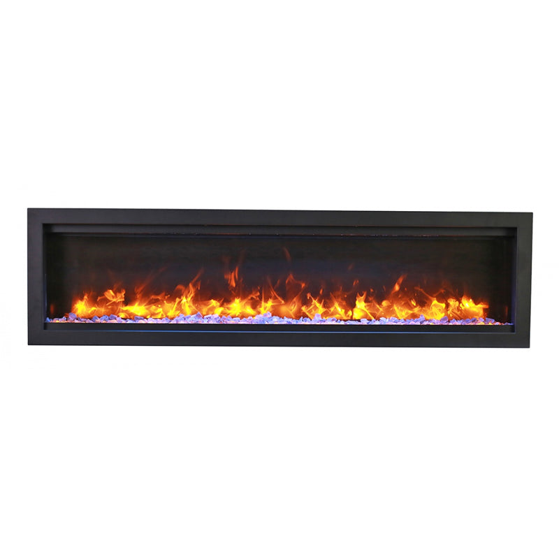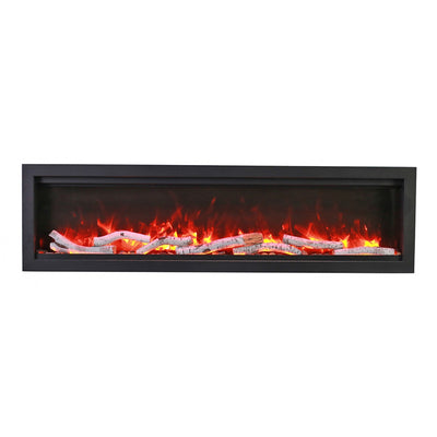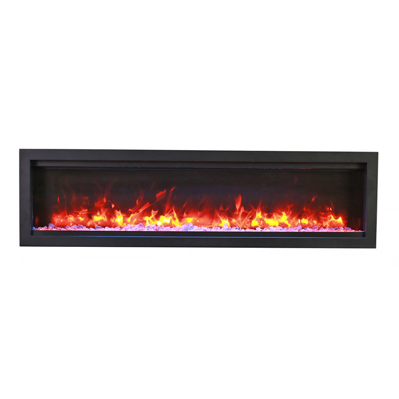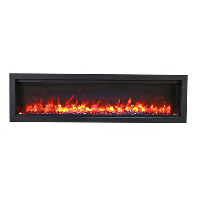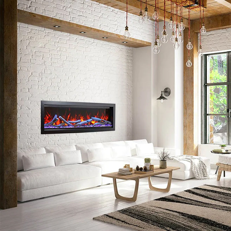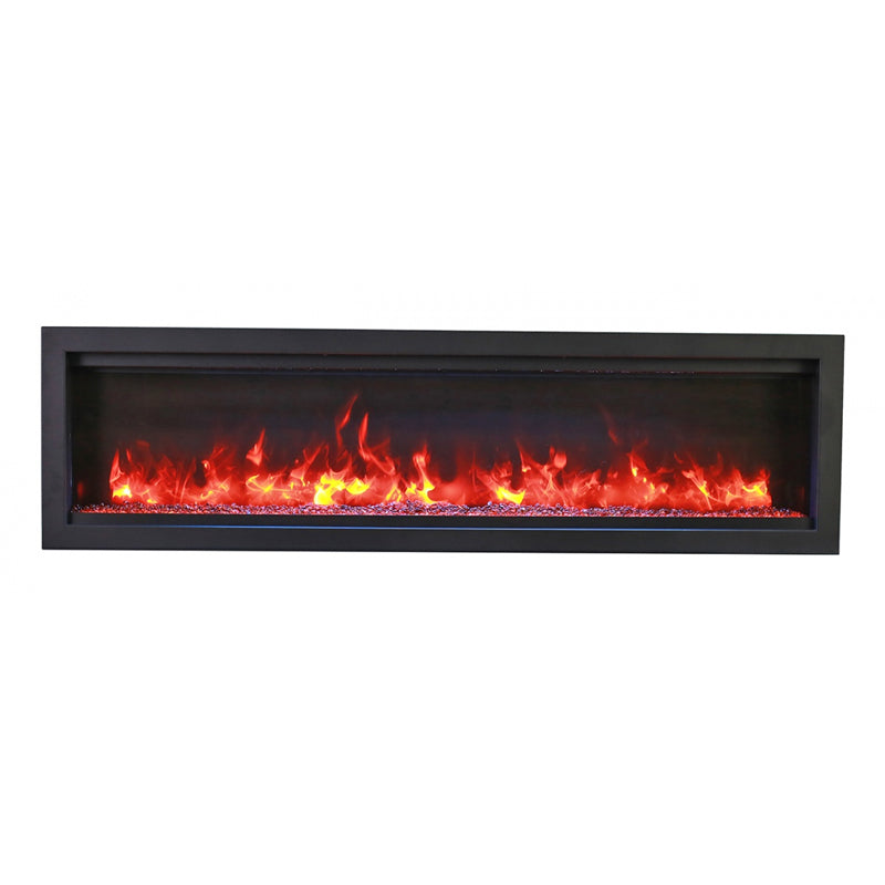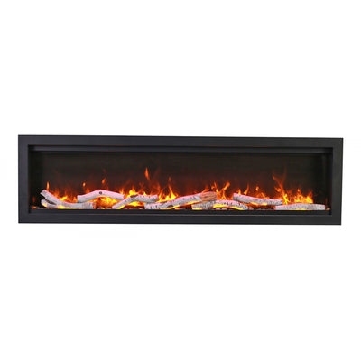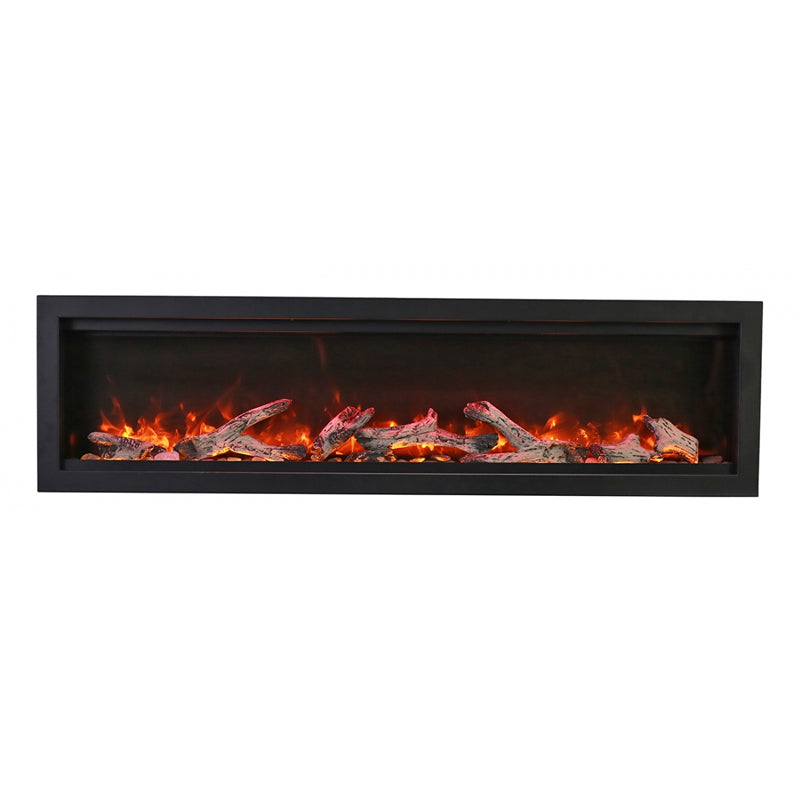 Embrace the symphony of fire and sound with the Amantii 60" BESPOKE Symmetry Smart Indoor | Outdoor Electric Fireplace (15-5/8"H x 60-1/4"W x 5-1/2"D). This panoramic marvel boasts a dazzling 13-1/8"H x 58-3/8"W glass view, where lifelike LED flames dance in shades of yellow, orange, and red at your command. Immerse yourself in the crackling melody of a real fire thanks to the integrated speaker and sound system, bringing the warmth of a winter night indoors. Control it all from anywhere: use the WiFi app to schedule firelight moments, adjust flame speed and brightness, or let the weather trigger its automatic warmth (up to 5000 BTU!). Choose your installation: fully recess for a seamless look, wall-mount for space-saving elegance (consult your builder!), or utilize the included black surround for a classic touch. Personalize your haven: adjust the flame pattern, set timers, and explore the endless possibilities. This BESPOKE masterpiece isn't just a fireplace, it's a captivating sensory experience that ignites your senses, indoors or out