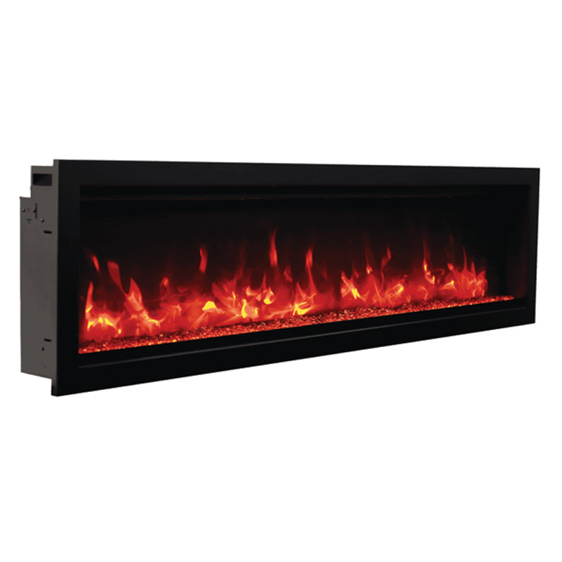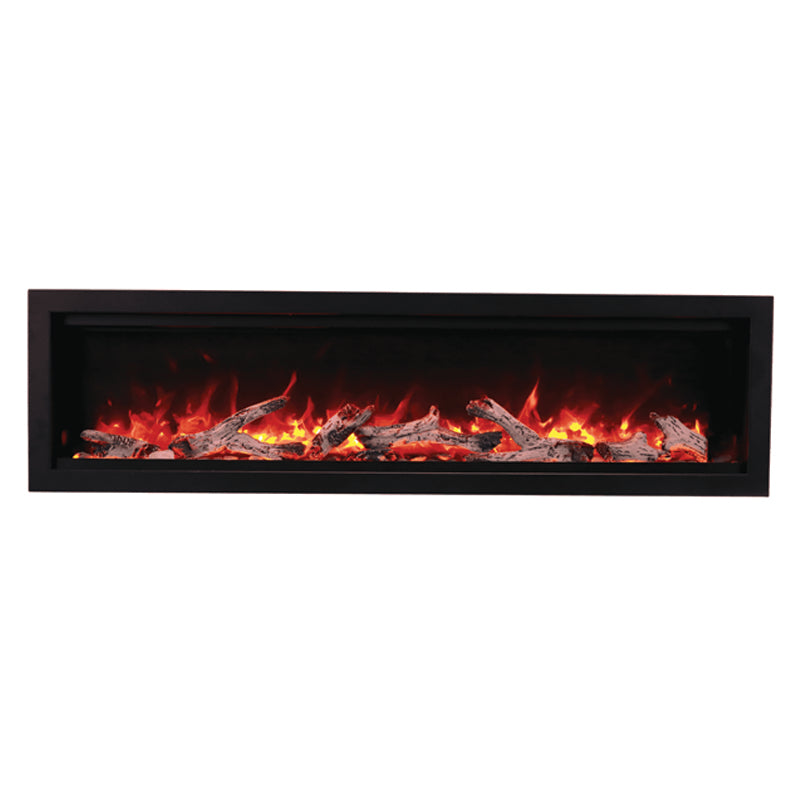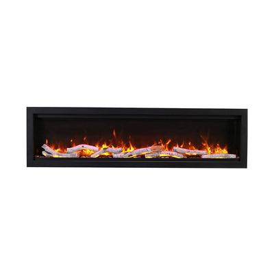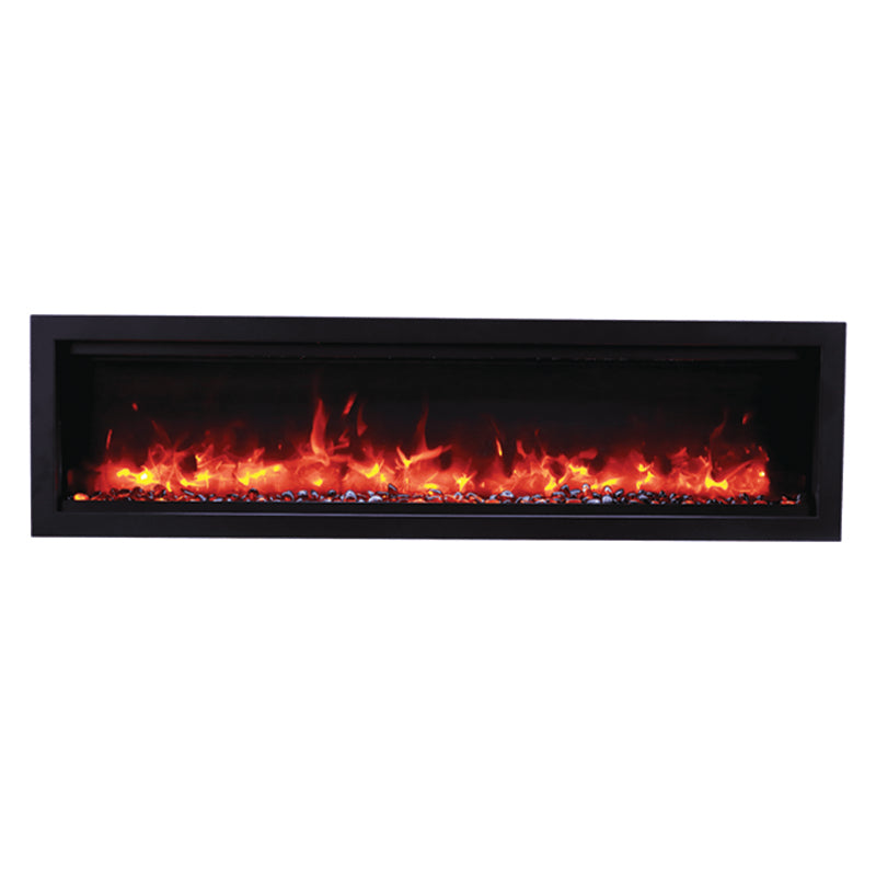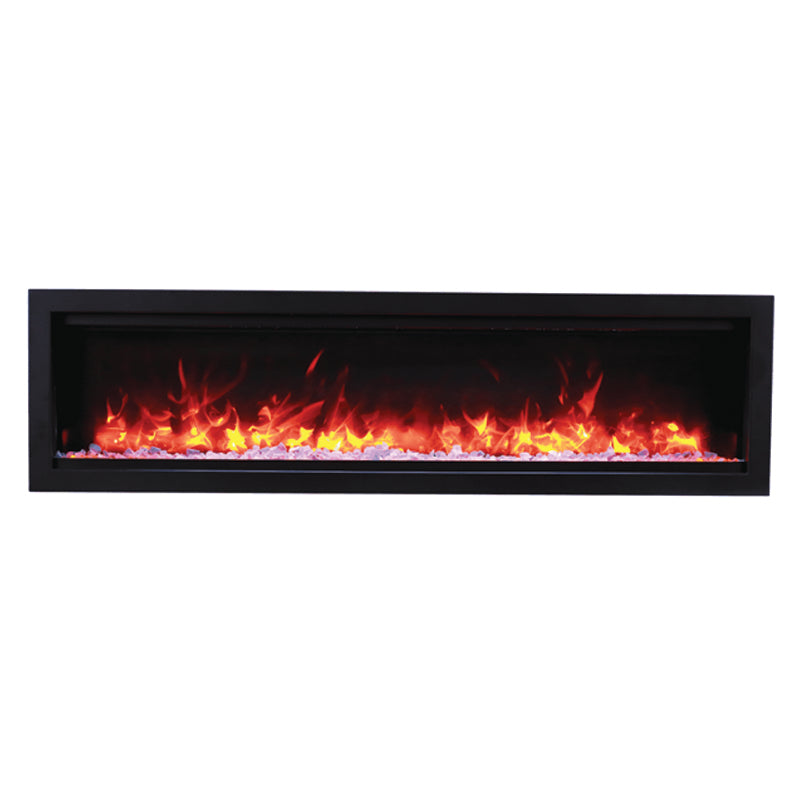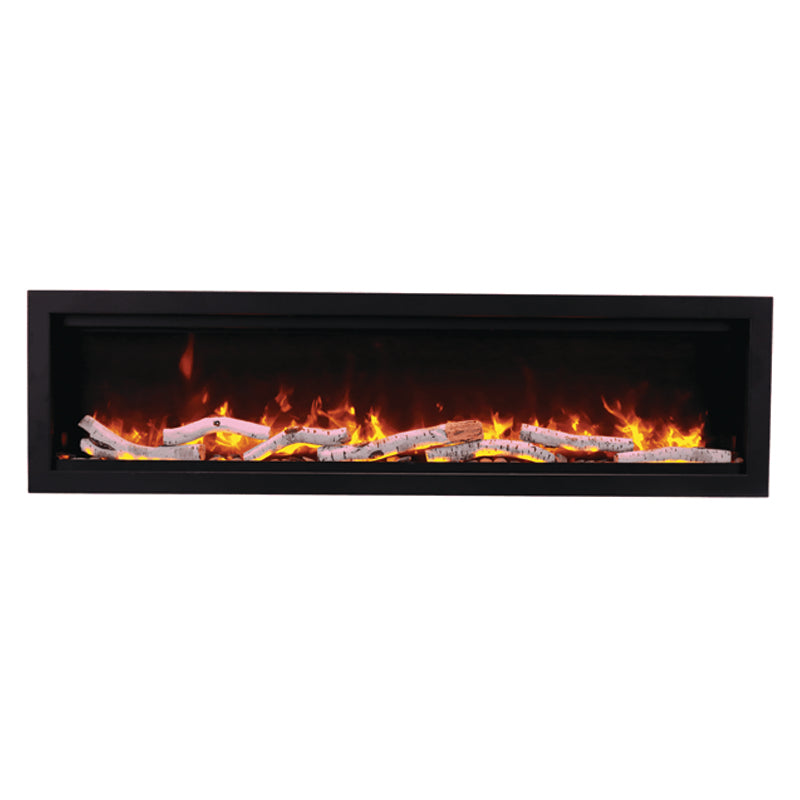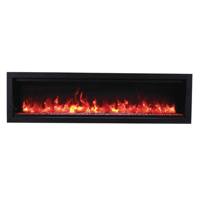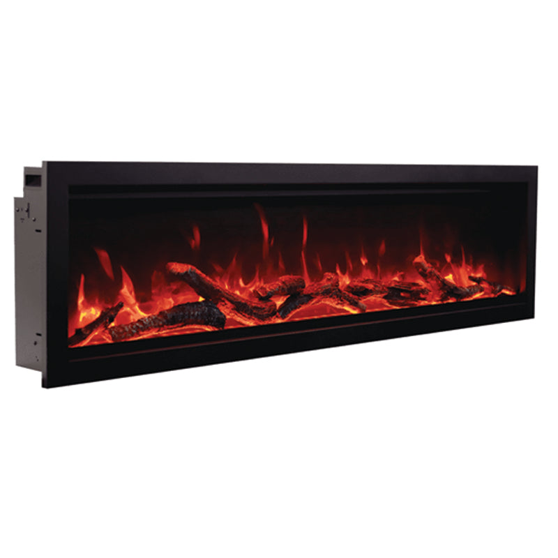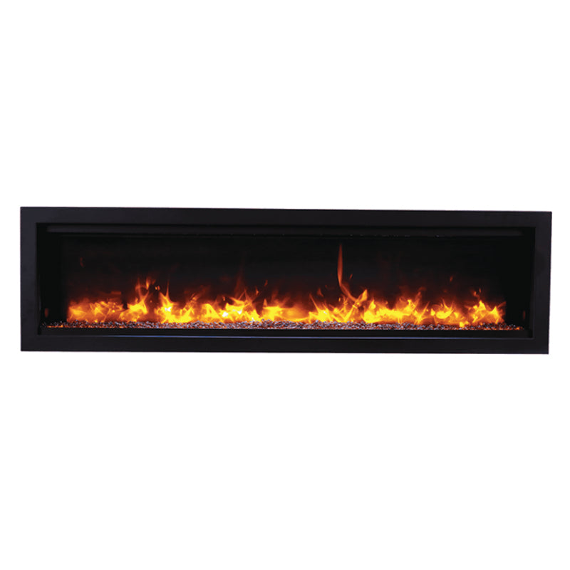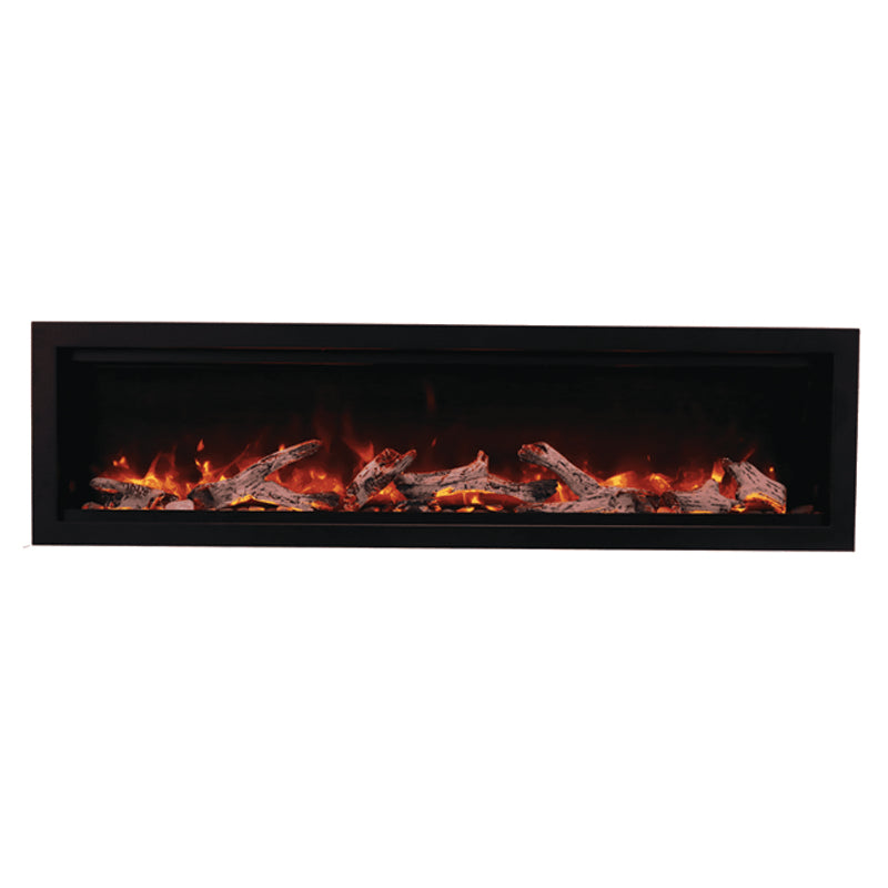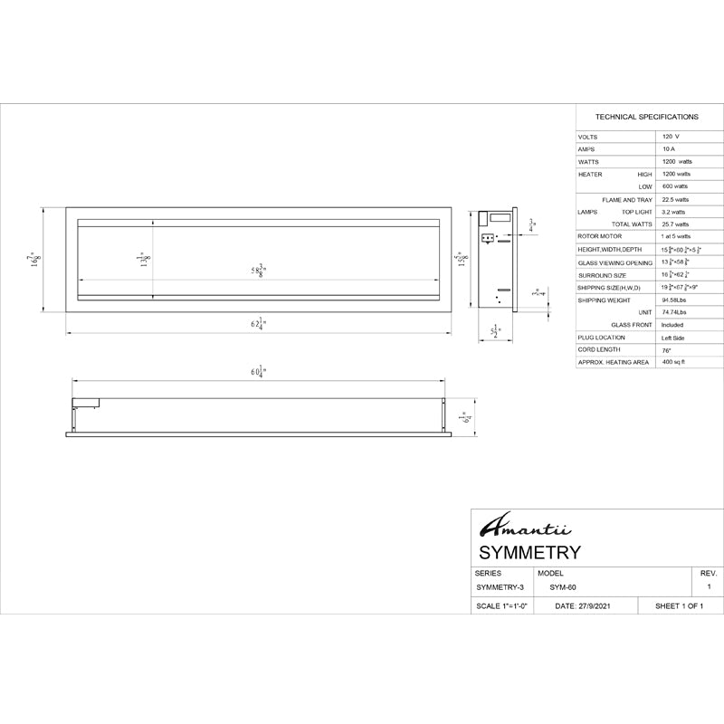Ignite your space with the Amantii 60" Symmetry Smart Electric Fireplace 15 5/8"H X 60 1/4"W X 5 5/8”D ), where versatility and beauty dance in perfect harmony.** This indoor/outdoor marvel boasts a captivating 13 1/8"H x 58 3/8″D glass view, showcasing a mesmerizing ballet of flames in shades of yellow, orange, and red at your command. Control the magic from anywhere: use the WiFi app to set schedules, adjust flame speed and colors, or let the weather trigger its automatic warmth (up to 5000 BTU!). No limits to your design: fully recess for a seamless look, semi-flush mount within a 2x4 wall with the optional SYM-XS surround, or simply utilize the clean, ventless face. Personalize your haven: choose between two flame patterns, adjust lighting with 11 canopy and ember bed color options, and explore a world of decorative media. Convenience reigns supreme: control everything from the intuitive touchpad or patented thermostatic remote, and program the timer and thermostat to welcome you home with warmth or adjust automatically to the weather. This Symmetry isn't just a fireplace, it's a blank canvas for your firelight dreams, indoors or out.