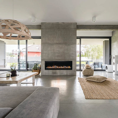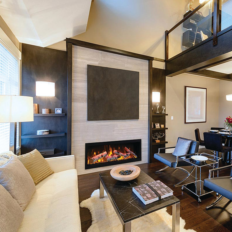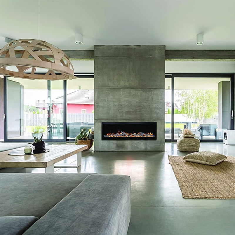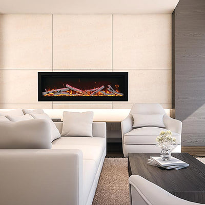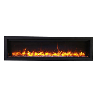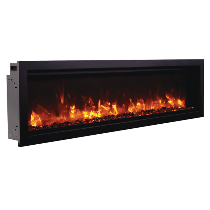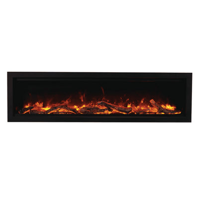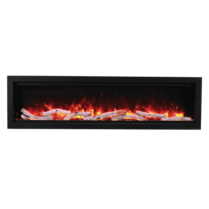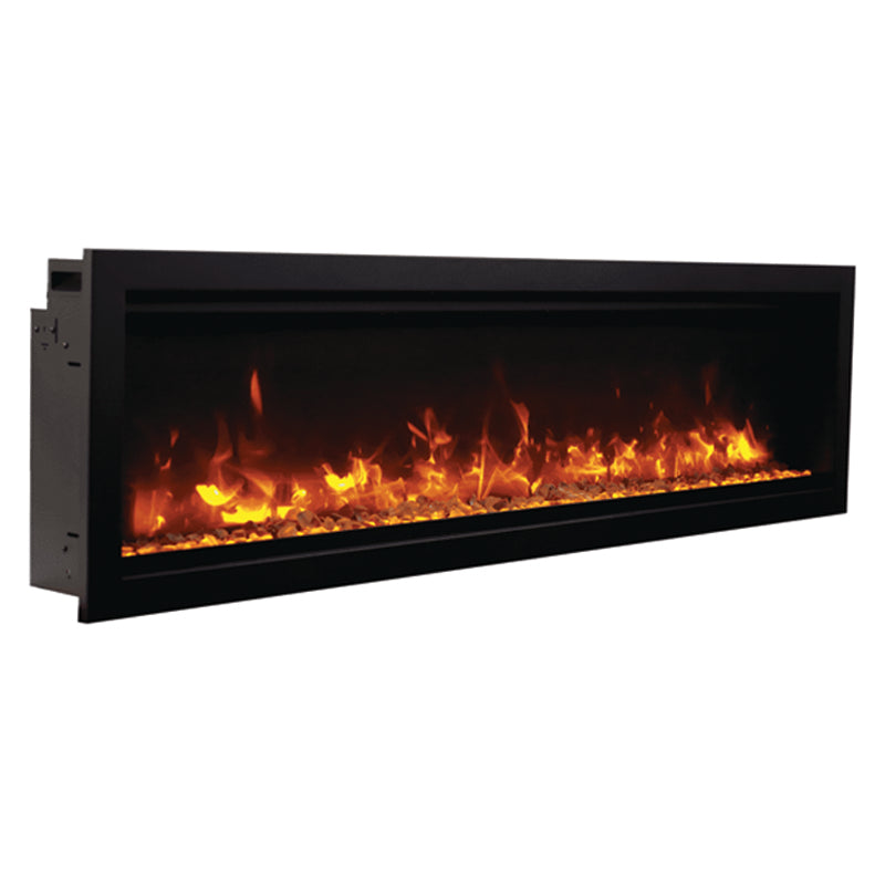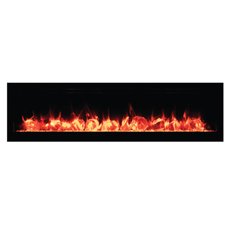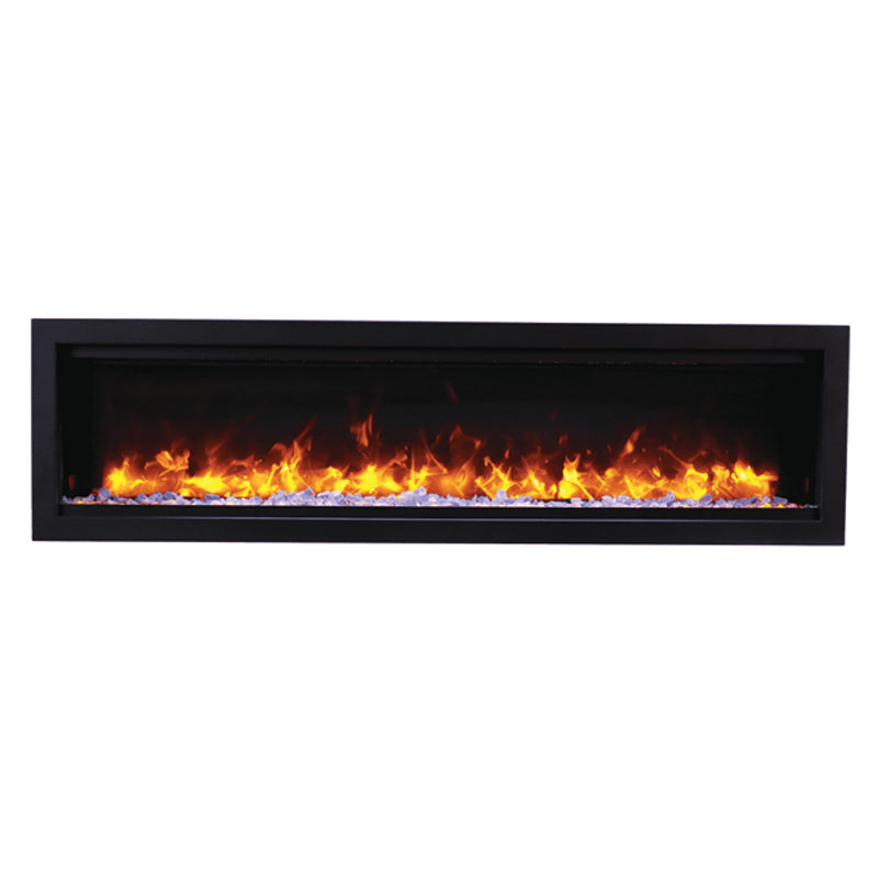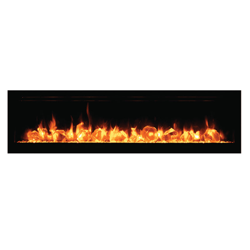 Ignite your space with the Amantii 60" Symmetry Smart Electric Fireplace 15 5/8"H X 60 1/4"W X 5 5/8”D ), where versatility and beauty dance in perfect harmony.** This indoor/outdoor marvel boasts a captivating 13 1/8"H x 58 3/8″D glass view, showcasing a mesmerizing ballet of flames in shades of yellow, orange, and red at your command. Control the magic from anywhere: use the WiFi app to set schedules, adjust flame speed and colors, or let the weather trigger its automatic warmth (up to 5000 BTU!). No limits to your design: fully recess for a seamless look, semi-flush mount within a 2x4 wall with the optional SYM-XS surround, or simply utilize the clean, ventless face. Personalize your haven: choose between two flame patterns, adjust lighting with 11 canopy and ember bed color options, and explore a world of decorative media. Convenience reigns supreme: control everything from the intuitive touchpad or patented thermostatic remote, and program the timer and thermostat to welcome you home with warmth or adjust automatically to the weather. This Symmetry isn't just a fireplace, it's a blank canvas for your firelight dreams, indoors or out.
