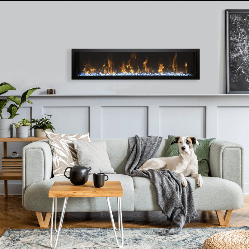 • Clean and Seamless in Design: this fireplace features a full frame viewing area