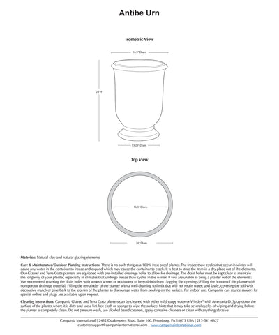 Cleaning Instructions: Campania Glazed and Terra Cotta planters can be cleaned with either mild soapy water or Windex® with Ammonia-D. Spray down the surface of the planter where it is dirty and use a lint-free cloth or sponge to wipe the surface. Note that it may take several cycles of wiping and drying before the planter is completely clean. Do not pressure wash, use alcohol based cleaners, apply corrosive cleaners or clean with anything abrasive.