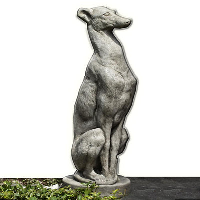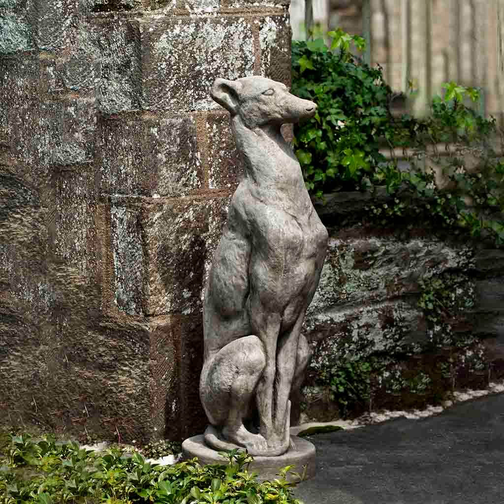 This Antique Greyhound Cast Stone Garden Statue is a charming addition to your outdoor decor. This greyhound poses in an alert position showing its lovely details of the statue. It is wonderfully painted by hand by trained artisans.
