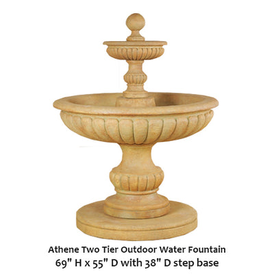 The eye-catching Athene Two Tier Outdoor Water Fountain is an exemplary centerpiece for any garden setting. This stately piece features a smooth ball finial, lovely gadrooned tiers and columns, and a round base.