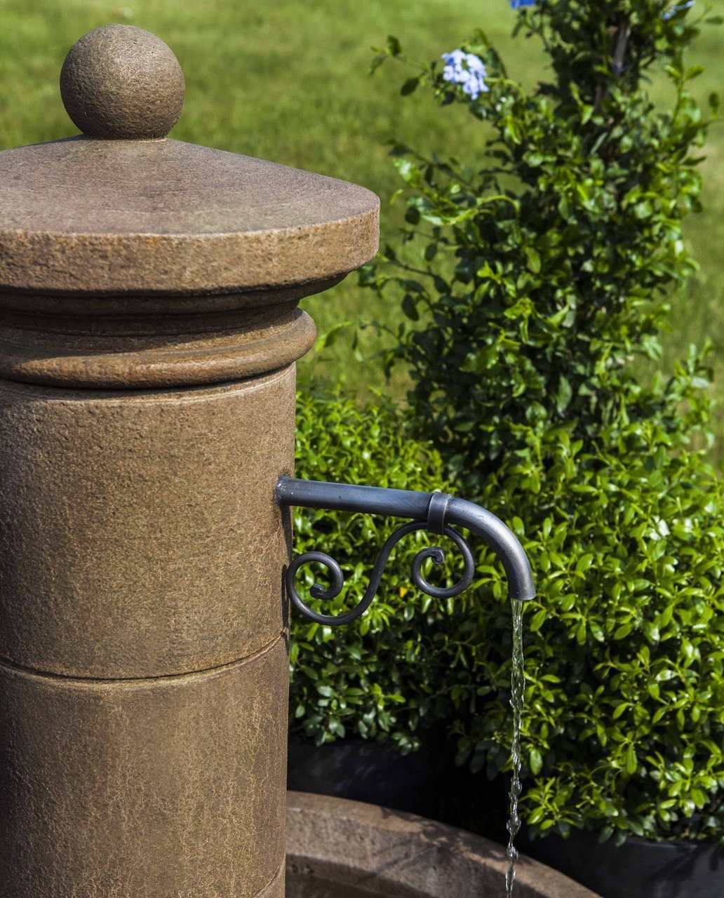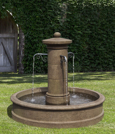 The Avignon Outdoor Fountain is sure to add a touch of French sophistication to any garden. Featuring a wide circular pool with a gorgeous round pillar in the middle. Attached to the pillar are three beautifully designed metal faucets.