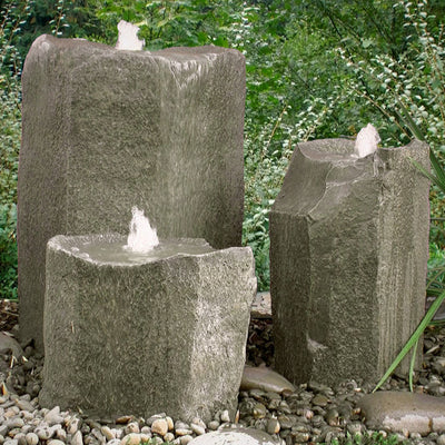 Designed with both elegance and utility in mind, the Bird Bath Triple Stone Fountain consists of three rock-like fountains that are a great addition to any landscape or outdoor design. A key feature is its ability to function as a birdbath, attracting a delightful array of birds and transforming your space into a lively oasis. The fountain is constructed from sturdy GFRC concrete, mimicking the appearance of genuine stone, resulting in an authentic and natural feel. Its exceptional construction ensures long-lasting durability, while being substantially lighter in weight than similar "real" stone fountains, which can weigh several hundred pounds more.
