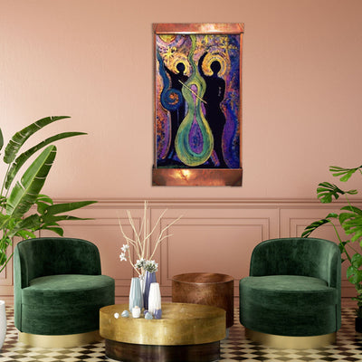 Bring a unique and music instrument design wall fountain in your home with Blues in the Night Wall Fountain. It features two people having fun and playing instruments in the bright night. It is designed and created in the United States. This wall fountain will surely bring a sophisticated look in your home.