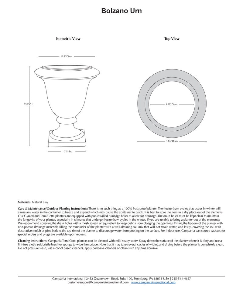 Campania’s glazed and terra cotta planters are hand made from natural clay using traditional artisanal techniques and high-fired at temperatures between 990-1000 degrees centigrade to ensure frost resistance and durability.