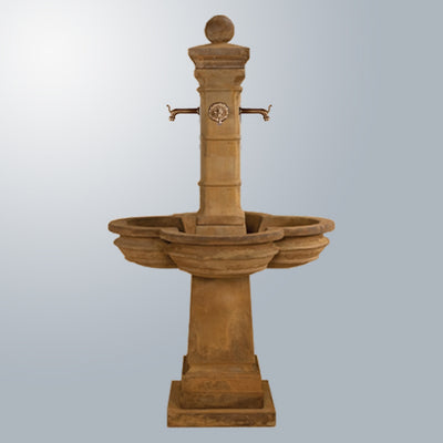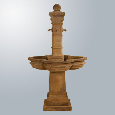 This outdoor fountain is available in 17 Different Finishes. Every finish is hand applied during the production process so color variation is expected. When the finish is applied to the water feature it is designed to replicate the look of naturally aged materials.