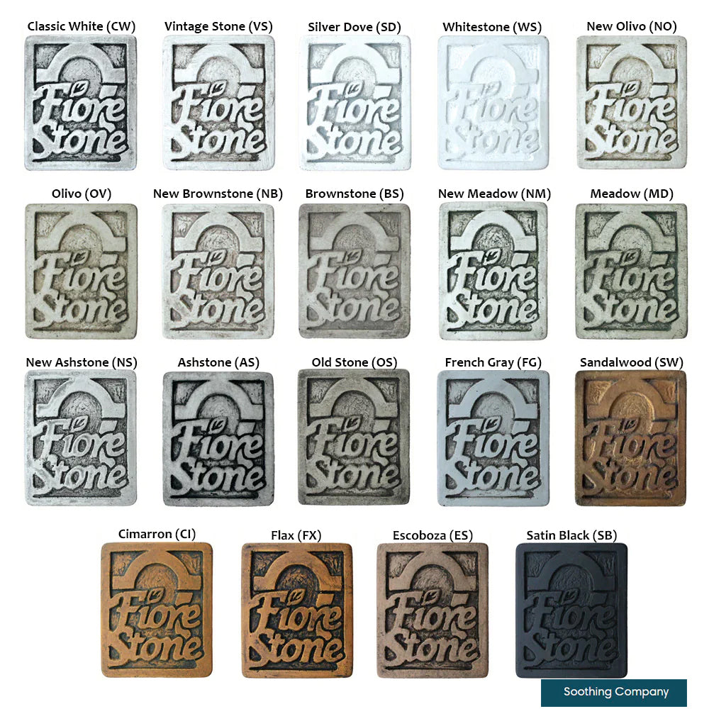 Please Note: This fountain basin is made to order and not mass produced. Please allow 2 -3 weeks of extra time for delivery. Also, our color chart is for example purposes only. Monitor settings and how the finish is applied to these outdoor water fountain basins can vary to what is shown in the color chart. Actual stone samples of each finish can be purchased to help you make your finish choice.